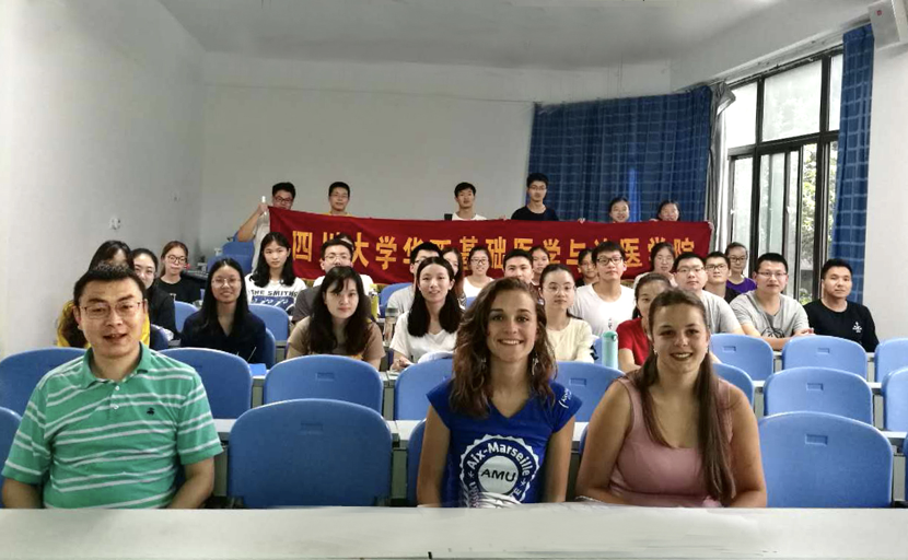 7月9日上午9:00,必赢官网2018国际课程周交流营在华西基础逸夫楼北教室开幕,教学副院长梁伟波教授出席了开幕式。来自法国艾克斯-马赛大学两名留学在现场与必赢官网学生展开了交流互动。