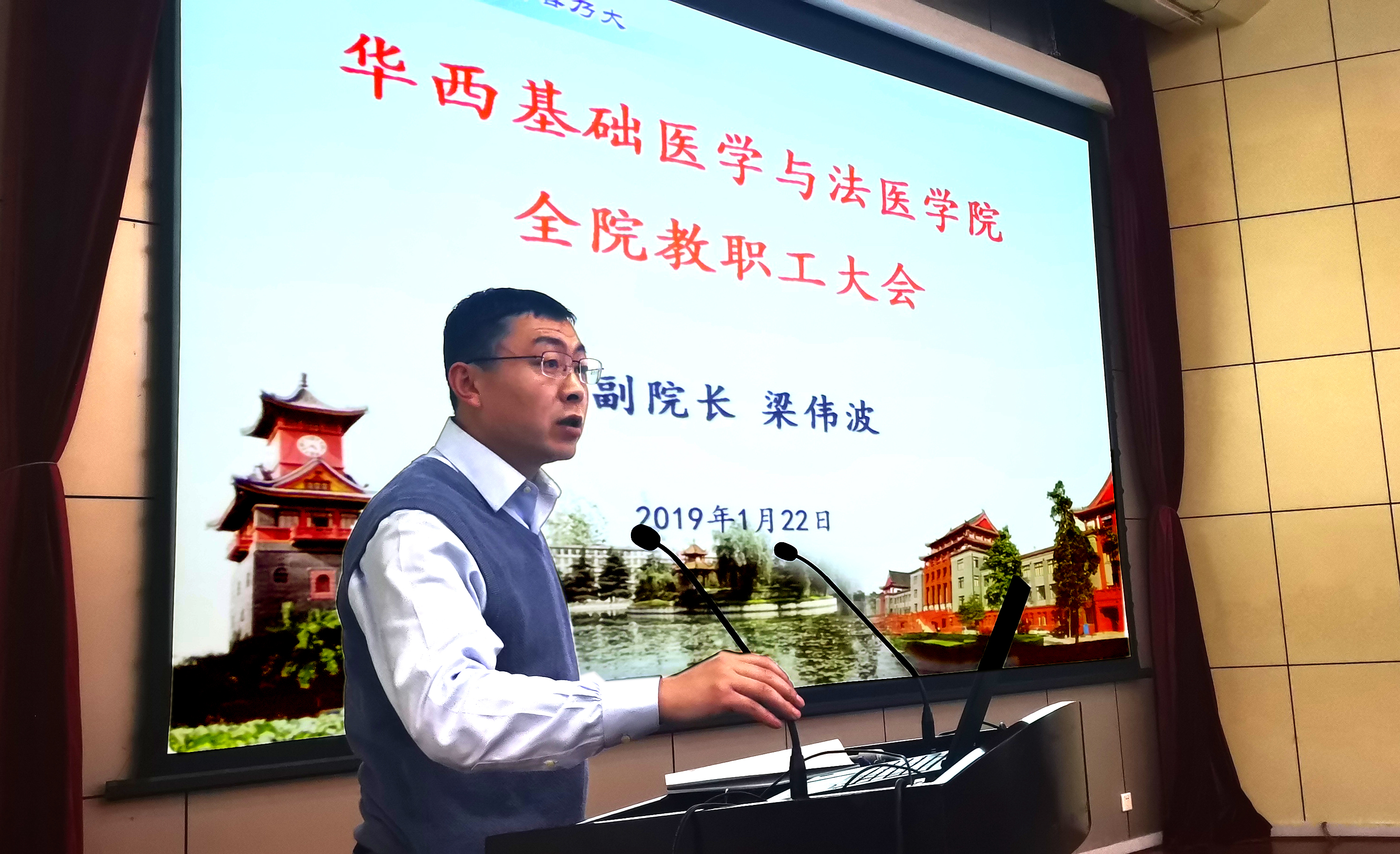 梁伟波副院长做学院本科教学工作汇报,他首先向全院教职员工汇报了2017年度学校本科教学质量分析报告,接着从2019年度教学基本动作、学院教学工作主要规划两个方面汇报了学院本科教学工作情况。他表示,2018年学院的本科教学工作成绩不俗,希望2019年全体教职员工继续努力。