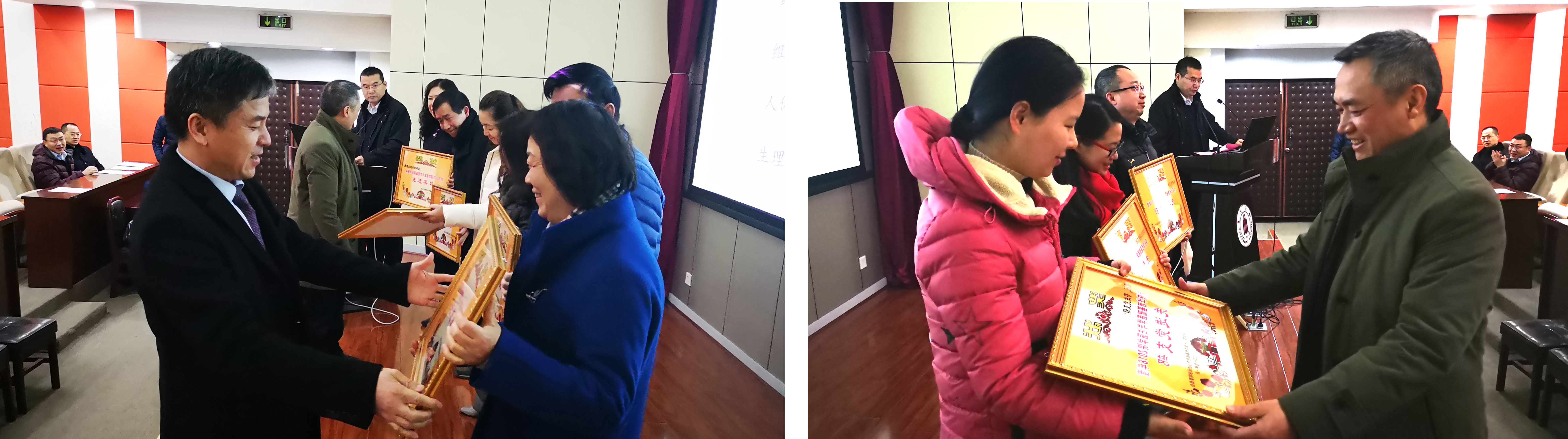 学院教授委员会刘肖珩主席宣布2018年学校和学院先进集体和个人。他表示,2018年在学院党委、行政的领导下,学院在教学、科研、人才培养等各个方面取得了显著成绩,为激励先进、树立榜样、振奋精神,学院评选病理生理学教研室等6个教研室为先进集体,机关党支部等3个党支部为先进党支部,人体解剖学教研室等6个教研室为本科教学先进集体,罗海玻、沈阳、罗涛、陈达丽、王魁五位老师优秀为青年科研之星,董立华、万莉红、袁东智、彭谨、郑焱江五位老师为本科教学先进青年教师,缪世坤、张媛媛、陈琦伟、孙晓东等五位老师为公共事务先进个人。另外,对2018年度必赢官网教职工获学校个人和集体奖励进行了表彰,学院领导对获奖集体和个人一一进行了颁奖。