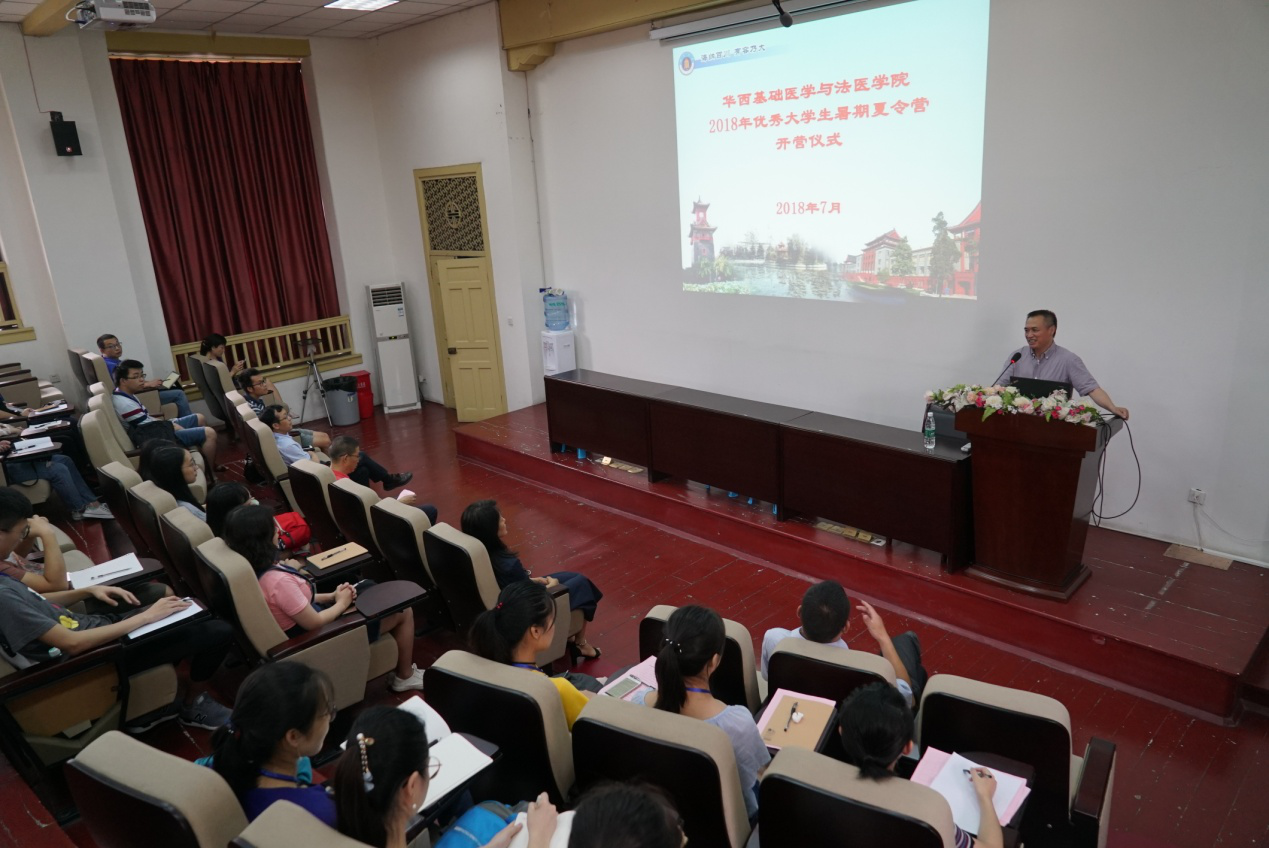 李昌龙书记首先致欢迎辞,他对从全国各地39所高校报名参加必赢官网夏令营的114名同学中脱颖而出的42位营员,表示了热烈的欢迎与由衷的感谢。他从必赢线路检测3003no1悠久历史谈到了必赢官网的发展历程,介绍了刘承钊院士、吴家馼教授、吴梅筠教授等必赢官网杰出人物以及必赢官网优秀的导师代表。他强调了必赢线路检测3003no1作为我国西部最具影响力的高校,正在创建世界一流大学。基础医学又喜迎入选一流学科建设之列,必赢官网亦是校院改革的试点学院,面临重大发展机遇。他着重指出必赢官网当前目标是打造包括“应激医学平台”在内的一系列国内顶尖的科研平台,希望更多的优秀学子加入必赢官网,师生携手共进、砥砺前行,实现个人和学院一流学科建设的同步发展,同相辉映。