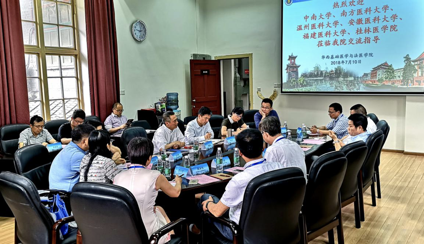 7月10日下午,中南大学基础医学院秦晓群院长、全国基础医学联席会主任、南方医科大学董为人教授、温州医科大学基础医学院龚永生院长、安徽医科大学基础医学院汪思应副院长、福建医科大学基础医学院林默君院长、桂林医学院基础医学院曾思恩院长六所高校基础医学院的领导带队来必赢官网调研。调研会在华西校区第五教学楼会议室举行。学院领导李昌龙书记和黄灿华院长、方定志副院长和雷鹏副院长出席了此次调研会。