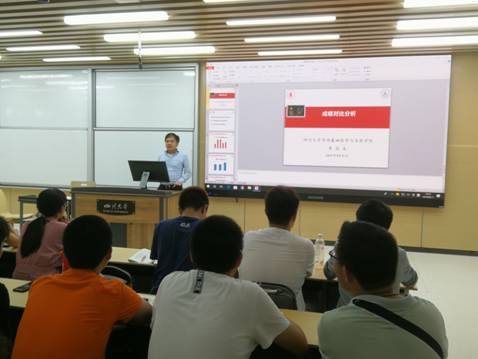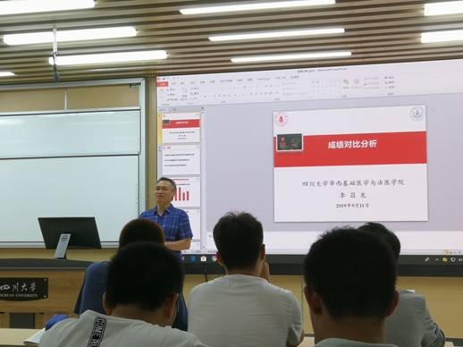 李书记对同学们上学期各科成绩和六级成绩进行了分析,并与临床、口腔等专业同学的成绩进行了对比。他强调,同学们要根据实际情况,全面深入的分析自身优势和不足,树立奋斗目标,敢于超越。他表示,学院将尽力为同学们成长成才提供良好平台。学院将加大投入力度,资助更多同学前往国外进行短期访学。实行“一对一导师制”,为同学们大学生涯规划提供全面指导。改善实验室条件,帮助更多同学尽早进实验室和课题组,接受科研训练。他强调,学院的两个本科专业正在向着国家一流专业行列前进,这将为同学们的发展提供更多机遇。希望同学们树立自信心,保持良好的精神面貌,努力奋斗,不断前进。