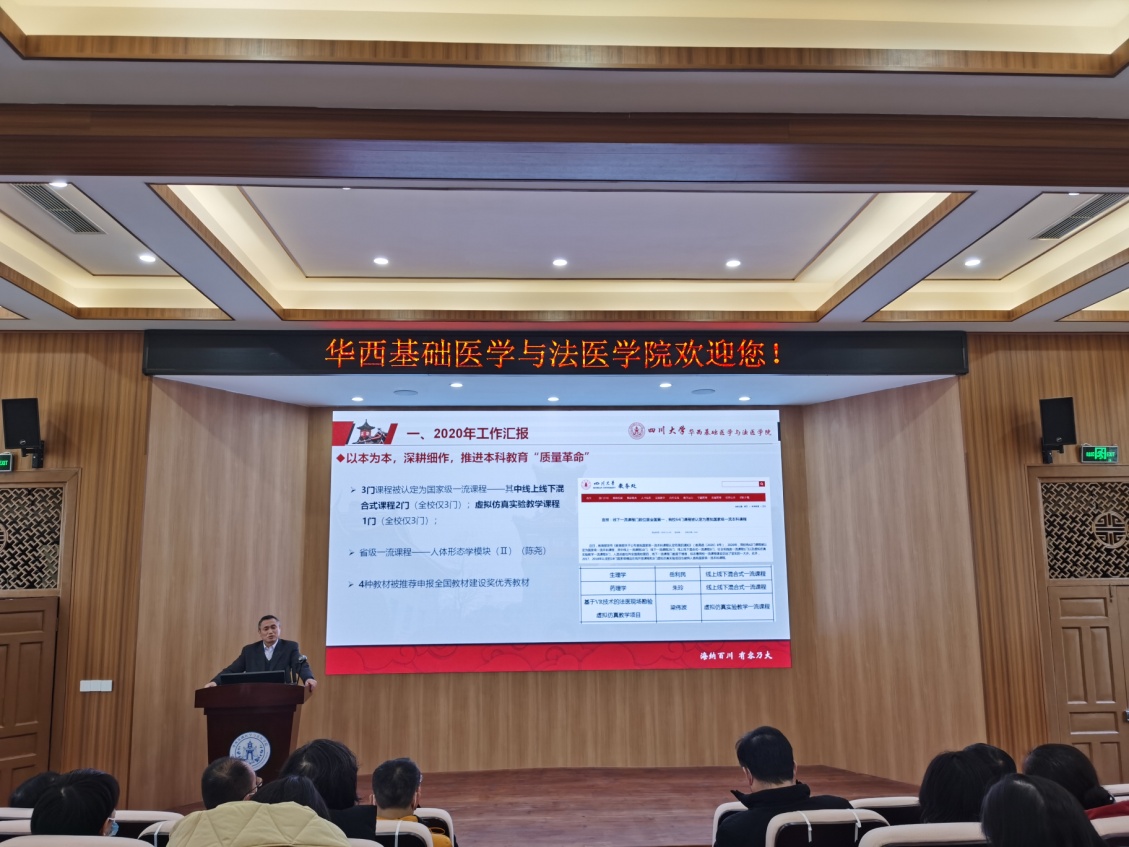 2020年12月31日下午,必赢线路检测3003no1在华西第五教学楼报告厅召开2020年度领导班子及班子成员年度岗位考核测评会,学院领导班子、全院教职工参加了此次大会,会议由学院党委副书记郭晓伟主持。