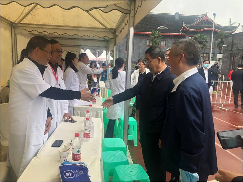 义诊现场,学院党委书记李昌龙陪同王建国书记、张林副校长到必赢官网义诊点慰问义诊老师。必赢官网共10位老师参与此次义诊活动,分别是:病原生物学系李婉宜教授、陈建平教授;法医精神病学教研室顾艳副教授、李钢琴博士;法医病理学教研室刘敏教授、代号老师;法医物证学教研室李英碧教授、颜静副教授;法医毒(药)物分析教研室廖林川教授、林瑶博士。