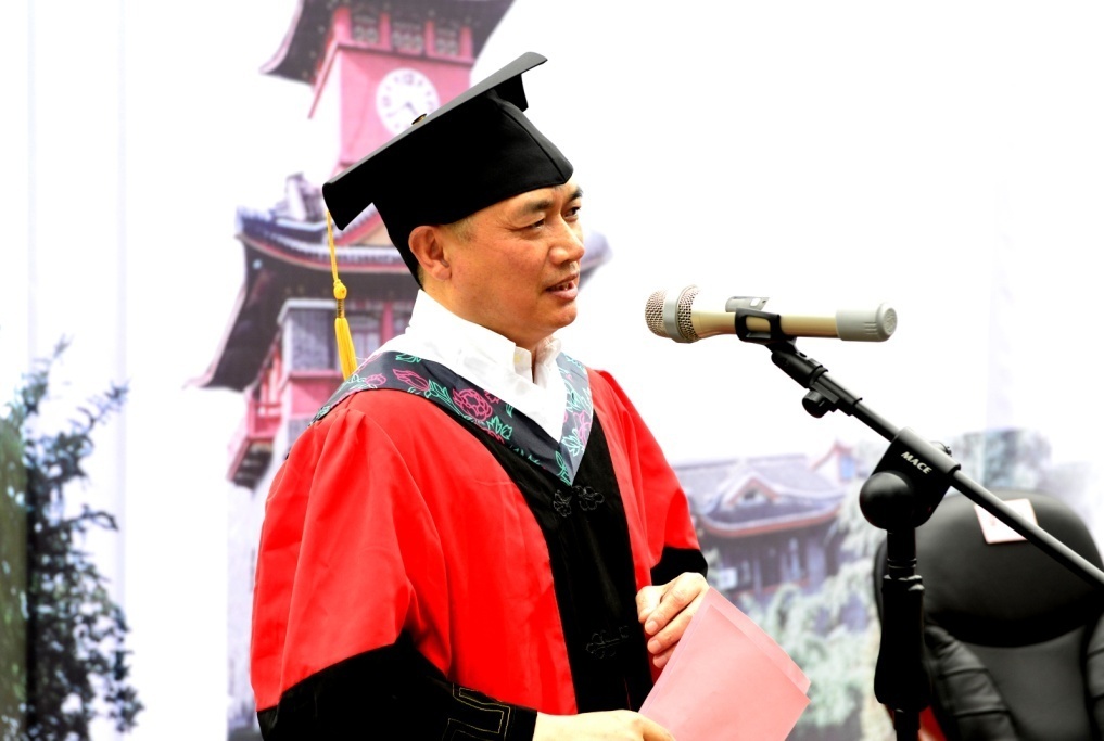 院长黄灿华教授在致辞时表示,同学们走出校门,面对纷繁复杂和快速变化的社会形势,如何把握好自己显得尤为重要。他希望同学们做到以下三点:一是要树立家国情怀,同学们要把个人命运与国家、民族和社会命运融合在一起,要爱国、担当、奉献。二是要学会坚持。他强调同学们成长发展是量变到质变过程,同学们要敢于克服困难和挫折,坚持自己的梦想,不断努力。三是要找准定位。他强调同学们要清晰认识自己的优势和兴趣,找到自己能够乐于奉献一生的事业,才能实现人生理想。
