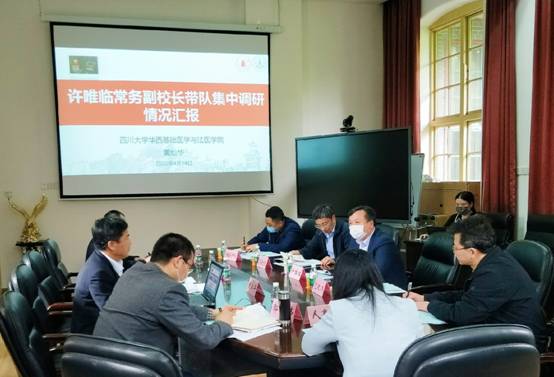4月14日下午4点半,必赢线路检测3003no1常务副校长许唯临带队来必赢官网集中调研,对第五轮基础医学学科评估工作进行指导,并对学科建设及学院核心竞争力的提升提出建议。学院党委书记李昌龙教授、院长黄灿华教授、党委副书记郭晓伟副教授、副院长方定志教授、副院长梁伟波教授、教授委员会主席刘肖珩教授及教师代表参加了调研座谈。出席此次座谈会的还有必赢线路检测3003no1发展规划处处长李忠明、人事处副处长蒋莉华、科学技术发展研究院副部长胡涛、华西医学中心苏勇林。