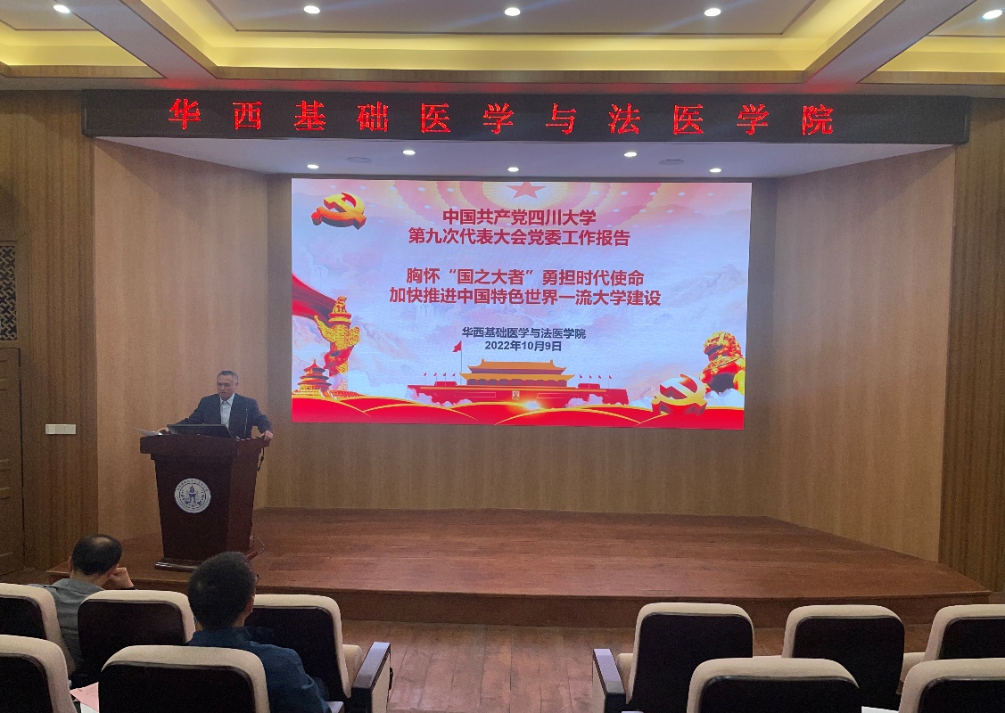 全院教职工一致认为,学校第九次党代会是在党的二十大即将召开之际的一次重要的会议,大会报告站位高、立意深、落点实,内涵丰富、要求明确,具有很强的思想性、理论性和指导性。全院上下要深刻学习领会大会精神,抓好落实,把思想和行动统一到学校党委的决策部署上来,以“党建争标杆、教学立品牌、学科创一流”为目标,以提升核心竞争力为抓手,凝心聚力推动学院高质量内涵发展,为学校加快推进中国特色世界一流大学建设和华西医学整体迈入世界一流尽心竭力,以实际行动迎接党的二十大的胜利召开!