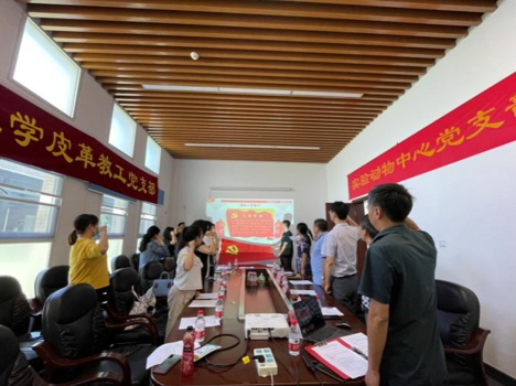 为庆祝建党101周年,弘扬伟大建党精神,喜迎党的二十大胜利召开,6月27日下午必赢线路检测3003no1实验动物中心党支部联合轻工科学与工程学院皮革教工党支部,在江安校区实验动物中心会议室联合开展“迎七一、强党性、跟党走、促发展”主题党日活动。轻工科学与工程学院党委委员、组织员田彬,必赢线路检测3003no1党委委员、组织员郑风劲,皮革系主任林炜、皮革教工党支部书记李正军、实验动物中心党支部书记刘学旭以及两个支部党员约20人参加了活动。此次主题活动由实验动物中心党支部书记刘学旭主持。