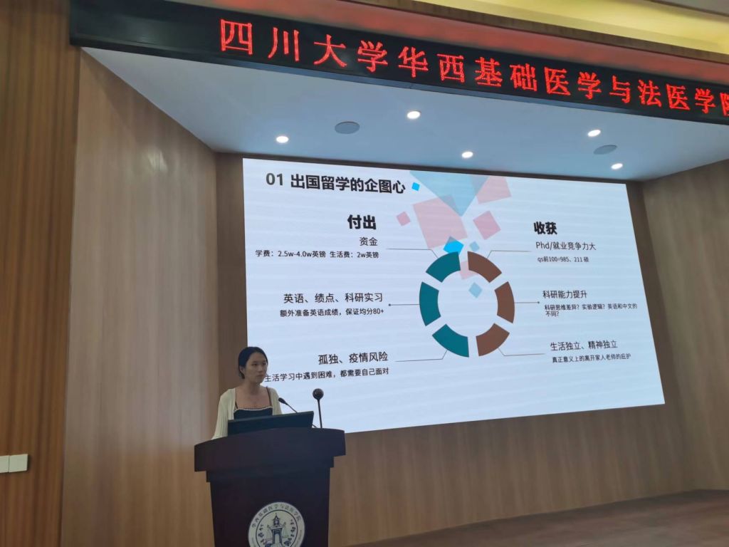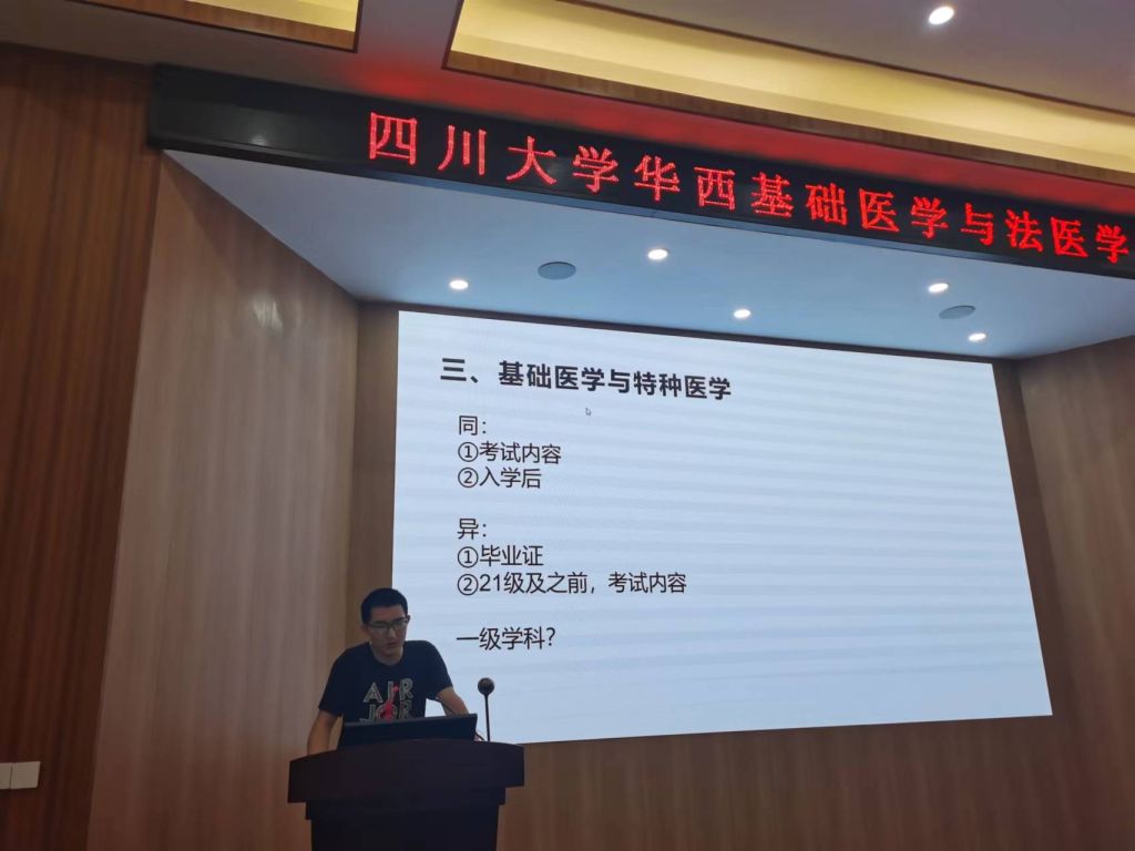 参加交流的四位同学分享了自己在考研、就业或申请出国深造过程中的心路历程。2017级法医学专业叶芷杉同学分享了基础医学考研经验,她根据自己的考研经历,系统全面地为同学们进行了讲解,包括考研的前期准备、信息搜集、考研流程以及各科复习建议等。2017级基础医学专业叶敏杰同学分享了自己的保研经验,解决了同学们目前关于夏令营选拔的一系列问题。2017级法医学专业宋金龙同学分享了法医学考研经验,针对性提出了法医专业考研需注意的问题。2017级基础医学专业刘晴蓉带来了精彩的出国经验分享,为同学们提出了另一条深造的路径。