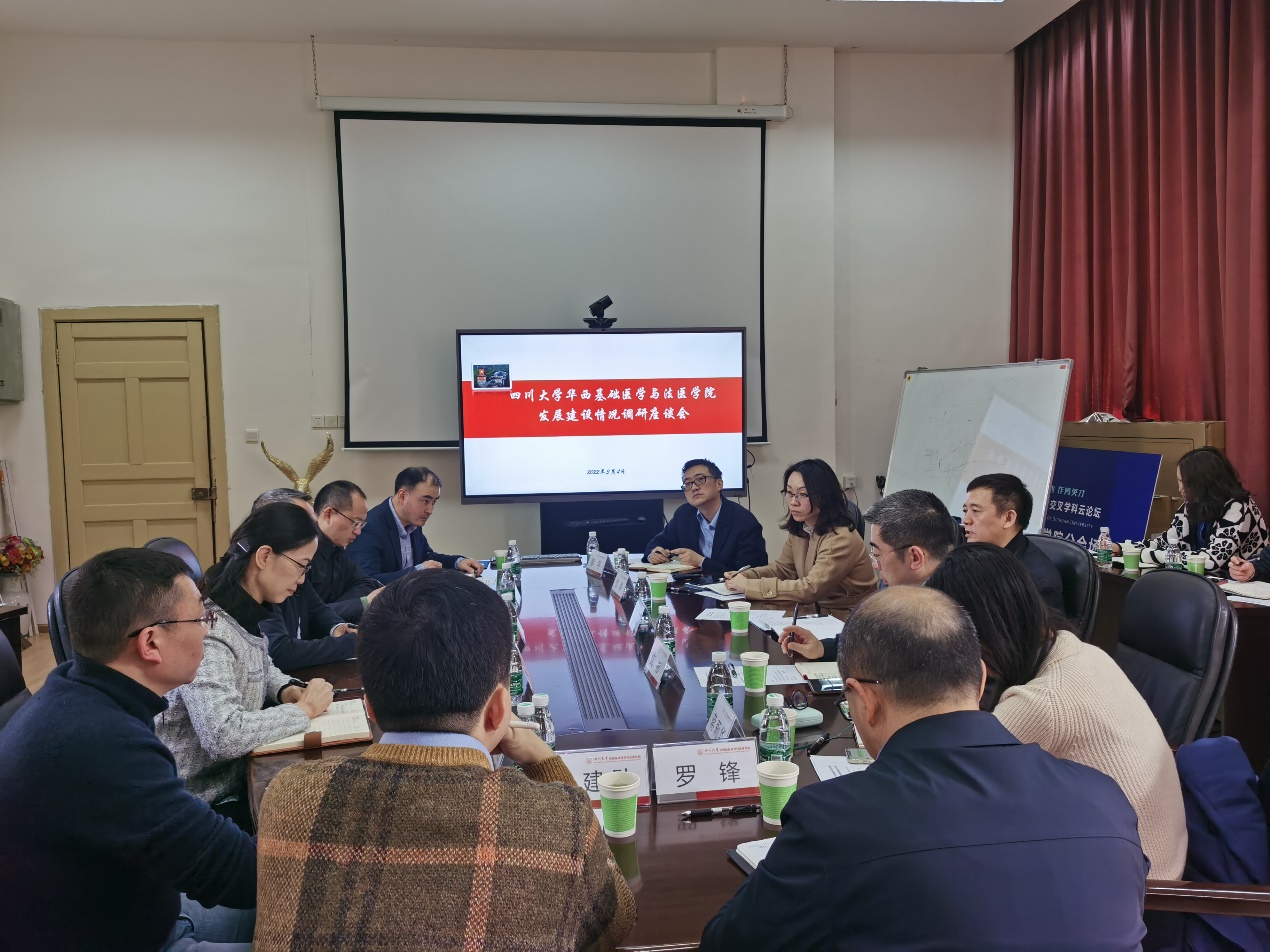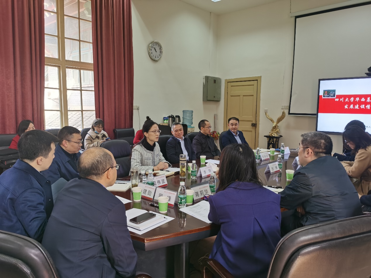 学院副院长刘肖珩、梁伟波、张舒羽分别就各自分管的学科建设、人才培养、后勤安全方面的工作与华西医学中心的各位领导进行了充分的交流、讨论。华西医学中心常务副主任沈彬表示,基础医学对于整个医学的发展起着至关重要的作用,华西医学中心一定一如既往的支持学院的发展,助力学院党建、事业工作再上新台阶。