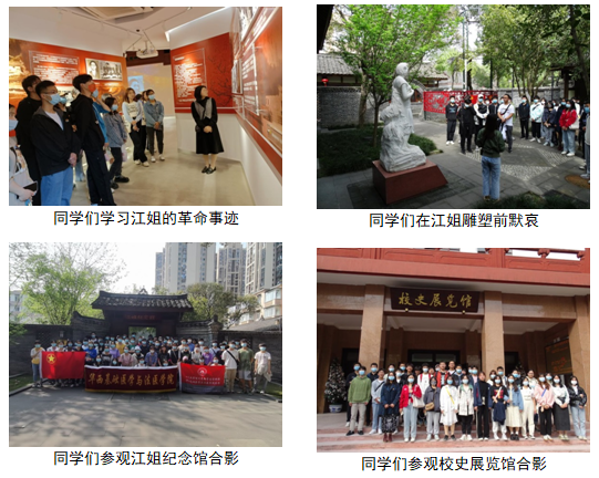 为引导广大青年学生坚定理想信念,增进家国情怀,传承红色基因,弘扬民族精神和时代精神,在中华民族传统节日清明节来临之际,必赢官网于3月18日至4月1日,举行2022年“学习革命先辈崇高精神,争做又红又专时代新人”清明祭英烈主题教育活动,组织学生前往校史馆、江姐纪念馆、毛英才烈士塑像以及人民公园保路死事纪念碑参观学习,开展祭扫活动。