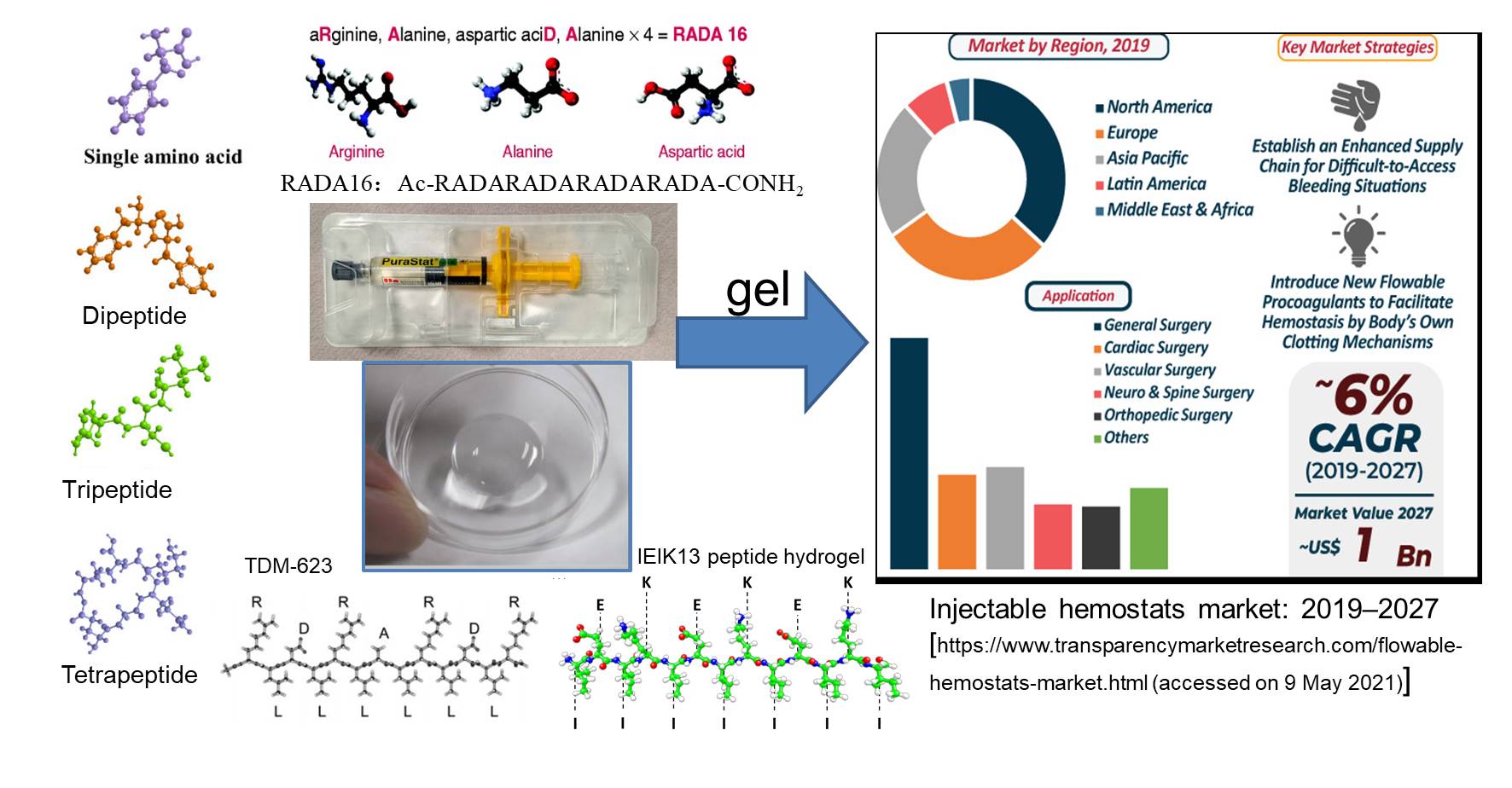 近日,学院杨泽宏副教授在线发表了题为“Short Peptide Nanofiber Biomaterials Ameliorate Local Hemostatic Capacity of Surgical Materials and Intraoperative Hemostatic Applications in Clinics”的长篇综述文章,杨泽宏副教授和必赢官网海外校友赵晓军教授为该论文共同通讯作者,必赢线路检测3003no1为第一署名单位。该论文系统阐述了自组装肽生物材料与天然水凝胶或各种聚合物水凝胶等支架材料在外科止血材料应用上相比较的好处和优点,并从外科技术角度深度剖析了当前自组装肽纳米止血材料在临床医学应用中的特点、进展与现状,特别是在非压迫性躯干出血、弥漫性粘膜表面出血和内部医学出血等情况下,自组装肽生物材料是创制生物活性神经支架、鼻腔填充物、胃肠道的大面积粘膜表面覆盖(食道、胃病变、十二指肠和下消化道)、心外膜细胞黏附载体、光学透明的止血基质屏障等方面具有外科临床应用潜力。在本文描述的多种外科专业与亚专业中,基于自组装肽生物材料的纳米止血装置(PuraStatÒ、AC5、TDM-621、TDM-623和SPG-178)实现了安全、有效和快速的术内止血效应,并有效促进体内外科伤口愈合与降低延迟出血、再出血、术后出血或相关并发症等风险,对不同临床止血模式下的体内生物安全性、出血适应症、组织密封质量、手术可行性和局部可用性进行全面而有序的外科技术分析与总结。