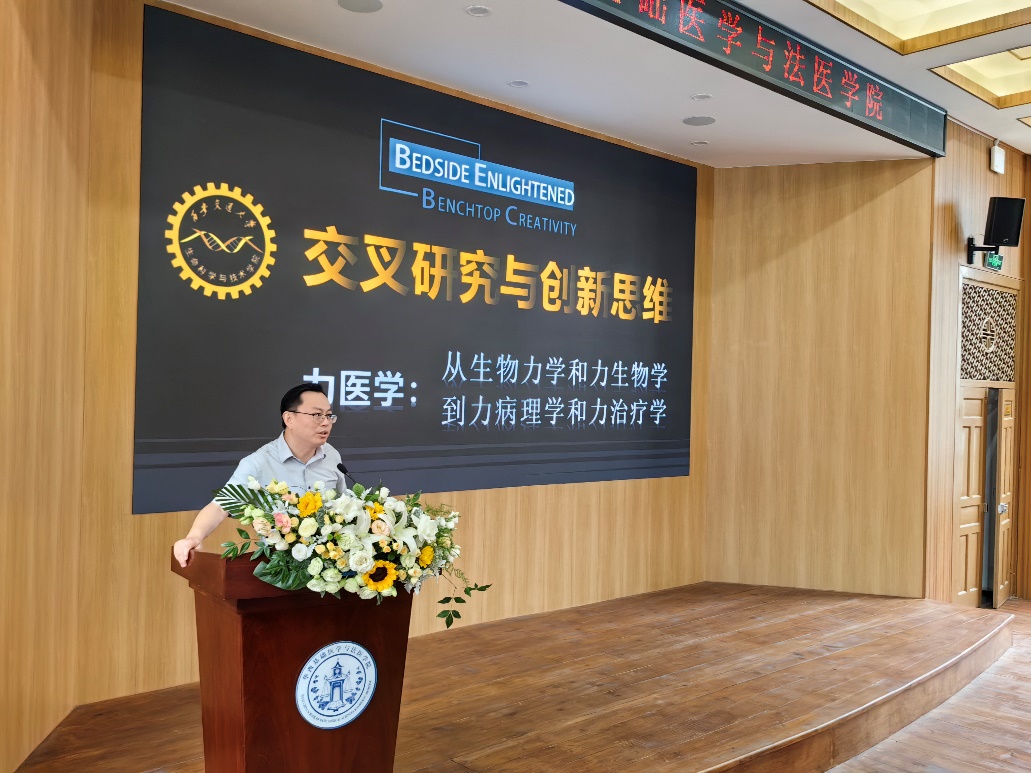 2023年6月19日下午,应必赢官网邀请,西安交通大学生命科学与技术学院院长徐峰教授在华西校区第五教学楼报告厅做了题为“理工医交叉融合:从生物力学和力生物学到力病理学和力医学”的学术报告。刘肖珩副院长为在座师生介绍了徐峰教授,并致以热烈的欢迎。