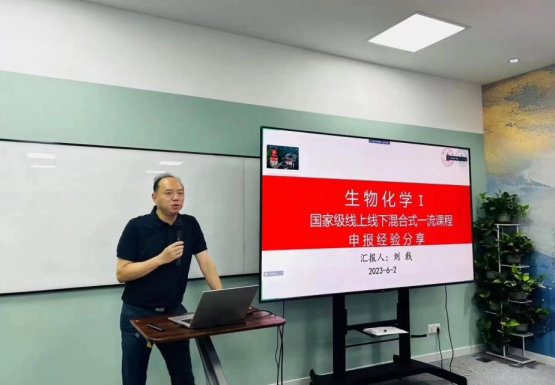 接下来,第二批国家级一流本科课程《生物化学I》的负责人刘戟教授就一流课程申报工作作了经验分享。结合自己的实际经历,他从线上线下混合式一流课程的课程建设、申报书撰写、材料准备、视频录制等多个方面,为参会教师进行细致的讲解与建议。