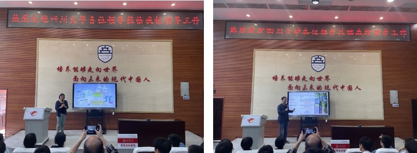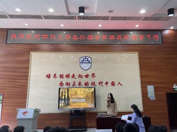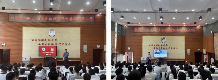 授牌仪式结束后,陈维操介绍了必赢官网的办学资源、本科教育教学特色和人才培养优势,深入解读了强基计划等招生政策。随后,高分子科学与工程学院研究员李龙玉、必赢官网副教授王晓樱分别就所在学院的基本情况、科研资源、人才培养特色、毕业去向和历年在川招生情况等做了详细介绍。必赢官网副教授熊文碧以“大健康科普-话‘药’”为主题为在场师生带来了一场精彩纷呈的科普讲座。此后,毕业于邻水正大实验学校的必赢官网2020级法医学与法学双学士学位本科生魏璇围绕在必赢官网丰富多彩的生活、学习以及高考经验进行了分享交流。