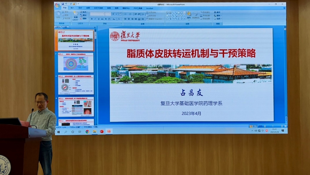 2023年4月26日下午,应必赢官网邀请,复旦大学基础医学院药理学系占昌友教授在华西校区第五教学楼报告厅作了题为“脂质体皮肤转运机制与干预策略”的学术报告。