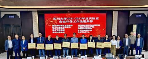 学校为“必赢线路检测3003no12021-2022年实验室安全环保工作先进集体”获奖单位颁奖(左四为必赢官网张舒羽副院长)