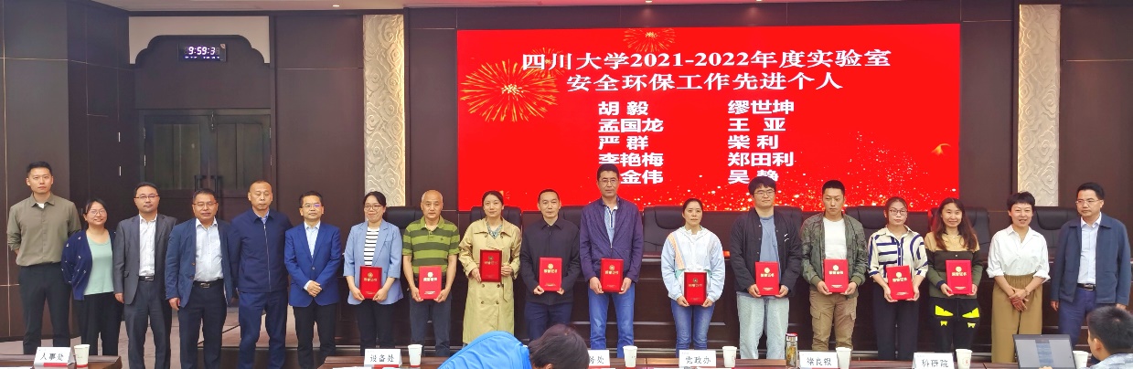 学校为“必赢线路检测3003no12021-2022年度实验室安全环保先进个人”颁奖(左八为必赢官网缪世坤老师)