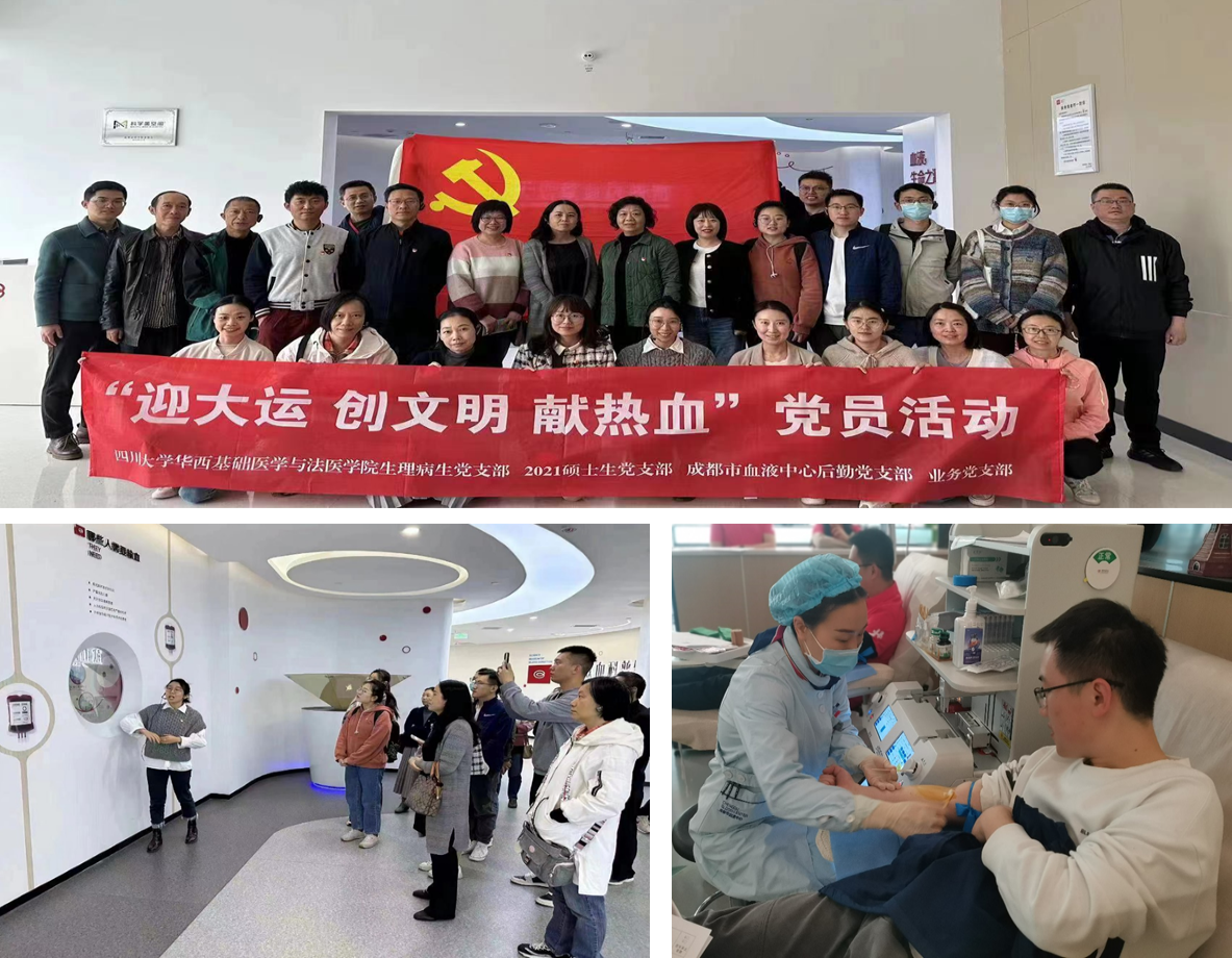 4月7日上午,生理病生教师党支部联合2021级硕士学生党支部参观了成都市血液中心,并和成都市血液中心后勤党支部、业务党支部共同开展了“迎大运 创文明 献热血”主题党日活动。
