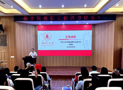 2023年9月8日下午,学院教职工大会在华西校区第五教学楼报告厅隆重召开,学院党政领导班子成员和全体教职工参加会议,学校组织部副部长黄雯雯同志、干部科副科长张婧同志到会指导。会议由学院院长李昌龙同志主持。