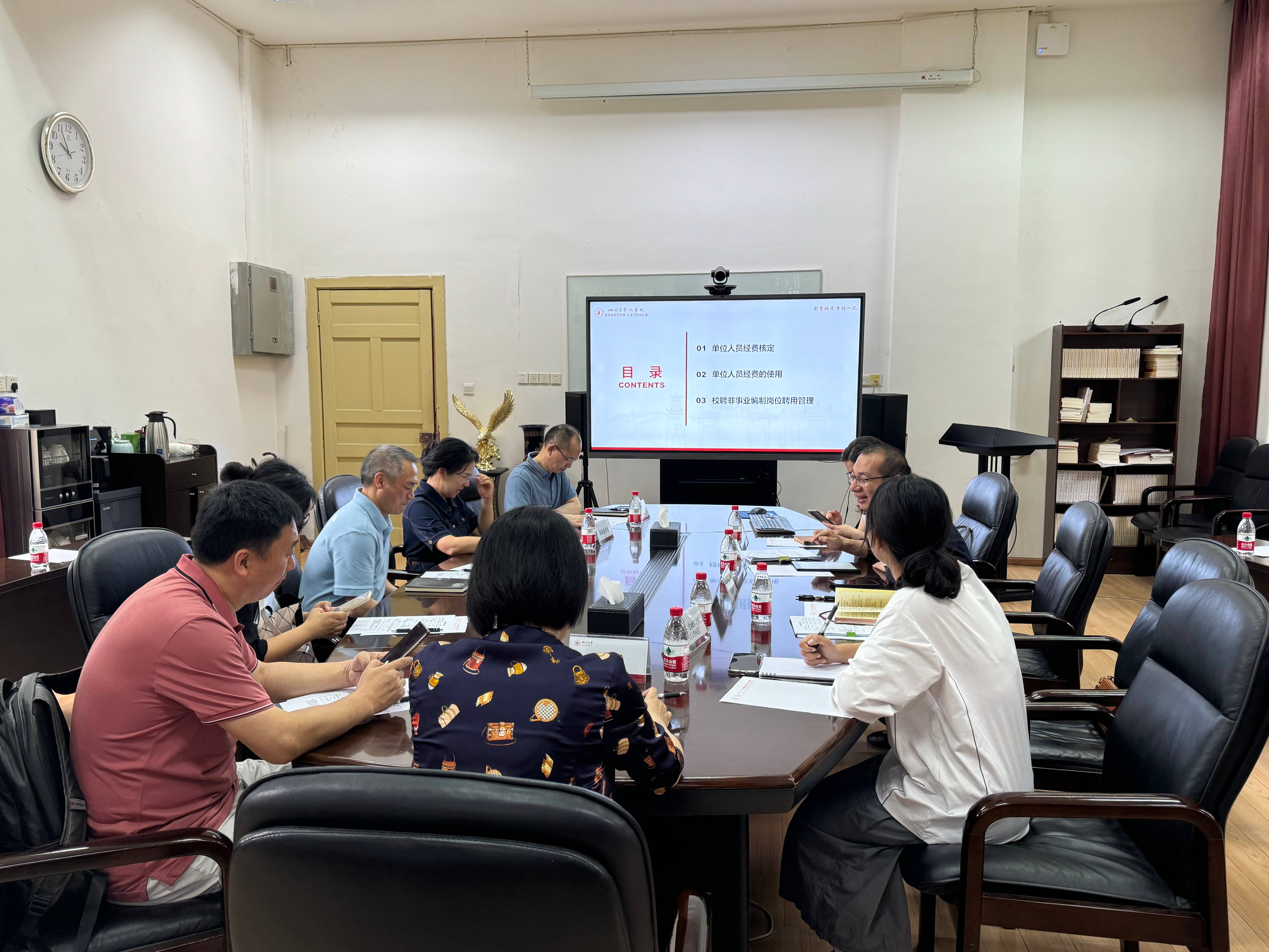 人事科科长刘畅从人员经费的核定、人员经费的使用以及岗位聘用管理办法等方面,向各与会单位领导与人事干事进行了政策宣讲,介绍了学校今年人员经费上的核定原则,指出了与上年度相比的细节变化等。王茂华主任进行了补充,他指出学校人员经费的核定和管理以人才培养为核心,加强对高水平人才队伍的引进与建设,实施总量控制原则,进一步优化师资结构,加强学科建设与人才引育的有效联动。