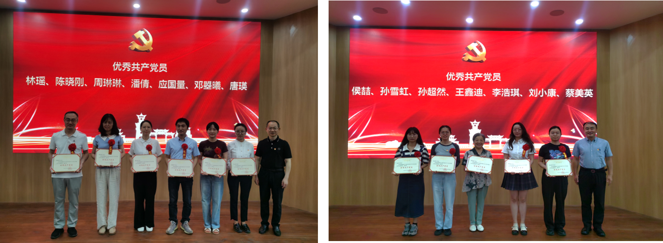 弘扬建党精神,创建“三个一流”,争当先锋模范。表彰环节,由学院党委副书记、副院长罗海玻宣读学院表彰决定:3个党支部获评“先进党支部”称号、8位党务工作者获评“优秀党务工作者”称号,14名共产党员获评“优秀共产党员”称号,同时代为宣读学校“三个一流”创建活动中学院获评先进党支部和优秀共产党员的名单,并对获奖的先进党支部和个人表示祝贺。学院领导班子成员为获奖集体和个人颁发荣誉证书。优秀共产党员代表生物医学工程研究室的应国量老师,优秀党务工作者代表硕士研究生第二党支部书记李卓同学先后结合自己的学习工作经历发表了获奖感言,感谢党组织的肯定与表彰,表示将牢记使命,奋勇向前。