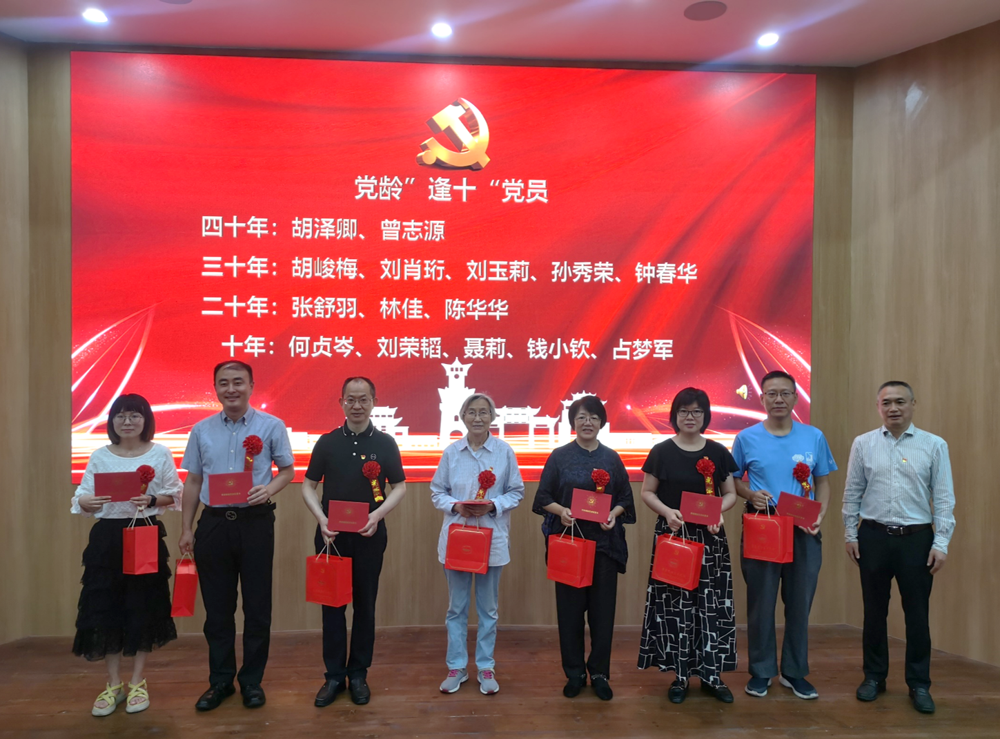 院长李昌龙向党龄“逢十”的党员颁发政治生日贺卡和纪念品