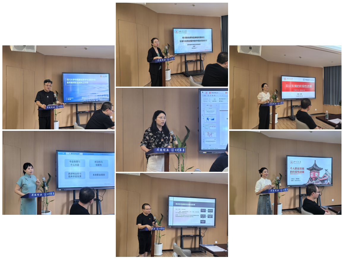 接下来,7位青年教师针对自身职业发展的阶段性进展,包括学术发展方向的选择、取得的教学科研成果、职业发展的困惑等展开汇报。在互动交流环节,青年教师积极发言,分享自己的感悟与困惑。学院教授委员会成员、资深教授周雪针对每位青年教师的困惑分享了自己的经验,并提出了发展建议。在座其他参会人员也群力群策共同为青年教师职业发展出谋划策,助力青年教师成长。