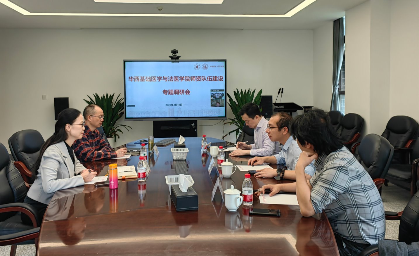 为进一步落实推进学校师资规模总量与质量核定,促进学校人才队伍建设,人才交流中心主任王茂华、华西医学中心办公室副主任孙建勋、建筑与环境学院党委书记兰中仁(线上)、哲学系副系主任余玥一行于2025年4月11日上午,来必赢官网就师资队伍建设开展专题研讨会,必赢官网党委书记李华、副院长刘肖珩、生理教研室主任杨文星、解剖教研室主任赵志伟及党政办、学科办相关人员参会。