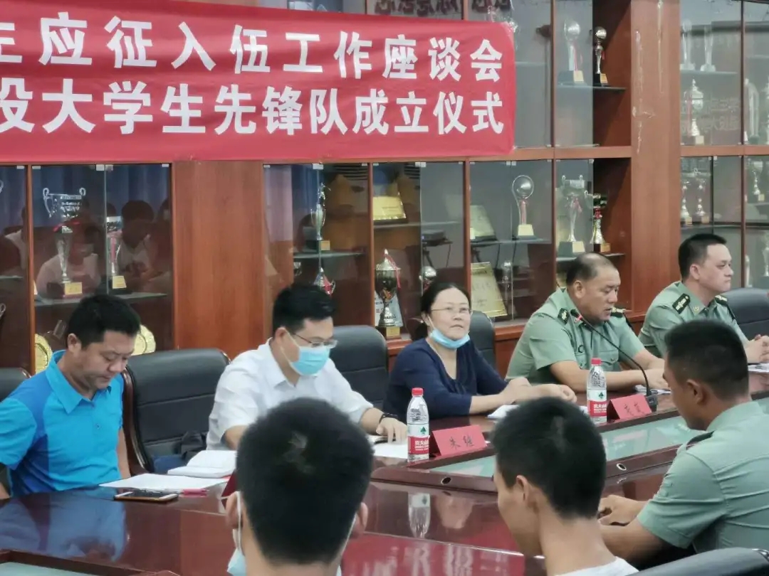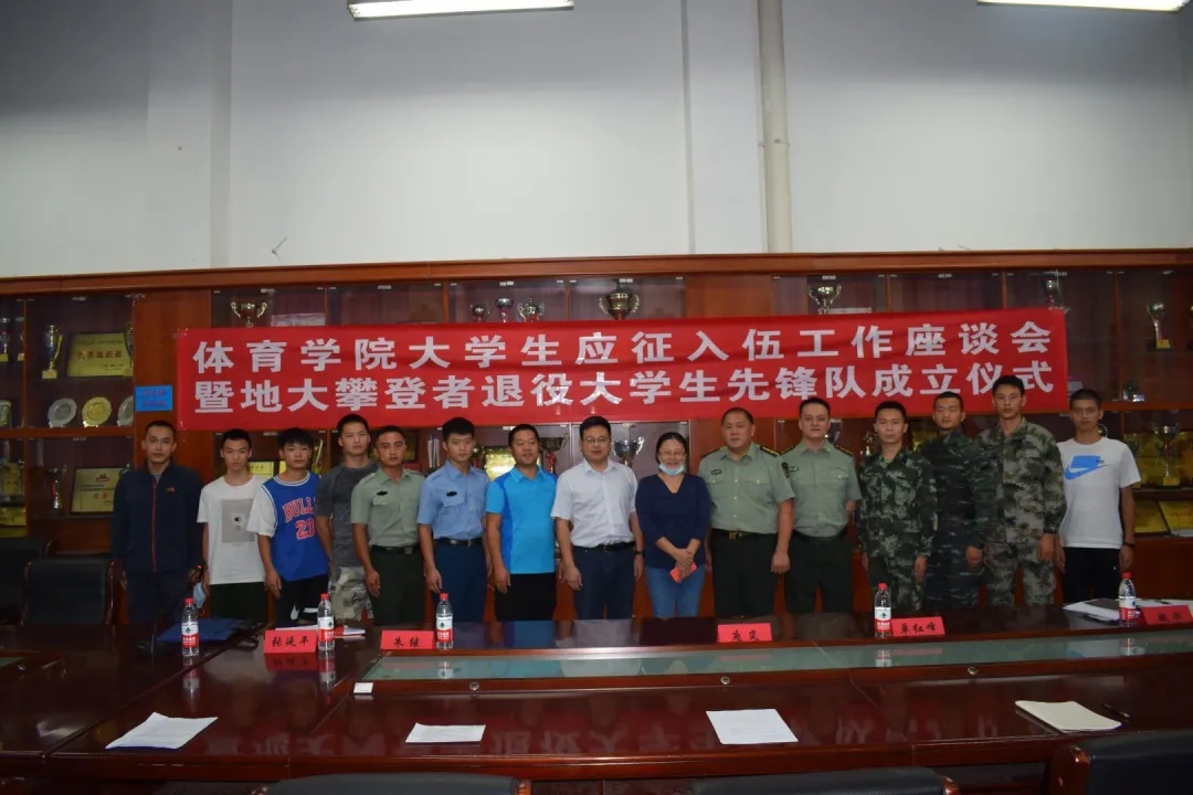 2020年9月10日15:00,beat365官网在体育馆二楼会议室召开了beat365英国官网网站大学生参军应征工作座谈会暨地大攀登者退役大学生先锋队成立仪式。出席此次会议的领导有武装部副部长单红峰,学工部副部长朱继,武装部老师魏刚,beat365英国官网网站党总支书记庞岚,beat365英国官网网站党总支副书记张延平。参与本次会议的人员有beat365英国官网网站在校的退役大学生和2020年应征入伍学生,以及beat365英国官网网站部分同学。会议由131181班的陈岳峰同学主持。