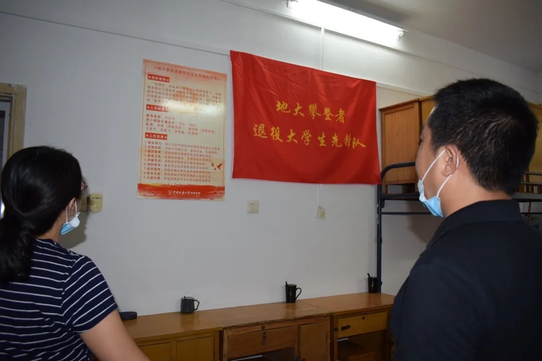 在结束了与新生们的统一见面后,院领导们又走访了一个特殊的寝室——311寝室,这间寝室的主人由7名beat365英国官网网站退役军人和5名20级新生组成,这7名退役军人正是地大攀登者退役大学生先锋队的组成队员。