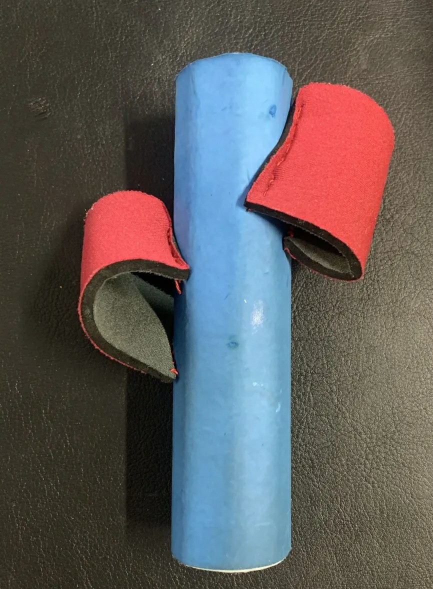 我们在日常训练和打球过程中发现,羽毛球握拍技术的掌握,会影响到后续一系列动作,很多羽毛球初学者和爱好者,由于没能掌握正确的握拍技术,球技的提升受阻,但是握拍技术与手感,很难通过口头教学或是示范动作进行教学,所以我们想通过设计一款矫正器,对使用者的手型进行固定,从而解决握拍姿势不对的问题。