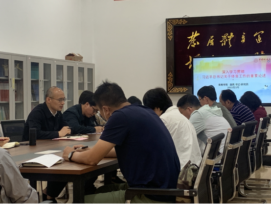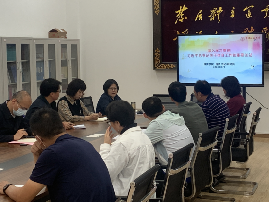 会上,李元院长领学“习近平总书记在中国人民大学考察时重要讲话”的精神;庞岚书记主讲“习近平总书记关于体育工作的重要论述”的党课。之后学院班子成员、三级机构负责人根据李元院长和庞岚书记所阐述的学习内容,结合学院实际,开展促进学院各项事业发展的对话与交流。