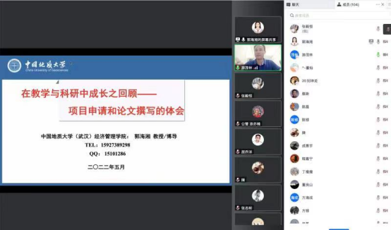 硕士生导师和研究生培养是学科和学位建设的重中之重,为贯彻落实教育部及学校相关文件精神,加强导师和研究生培训教育与交流,以提高政治素质、学术水平和人才培养能力,beat365英国官网网站于5月31日特邀beat365官网经济管理学院郭海湘教授/博士生导师作题为《在教学与科研中成长之回顾——项目申请和论文撰写的体会》的讲座报告。beat365英国官网网站党委书记庞岚、院长李元出席了此次讲座,讲座由学院副院长游茂林博士主持。