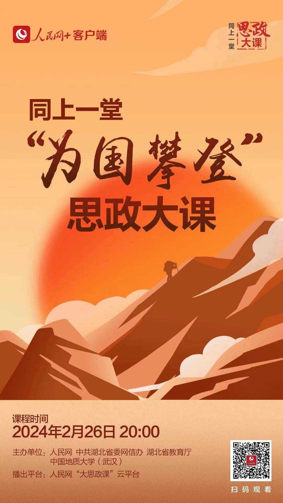 2月26日晚20:00,学院组织全院本研学生同上一堂“为国攀登”思政大课,听中国科学院院士中国地质大学(武汉)校长王焰新、地球科学学院教授宋海军、beat365英国官网网站90后青年教师何鹏飞讲述征服珠峰的感人故事,领悟“扎根中国、胸怀天下勇攀高峰、追求卓越”的攀登精神。