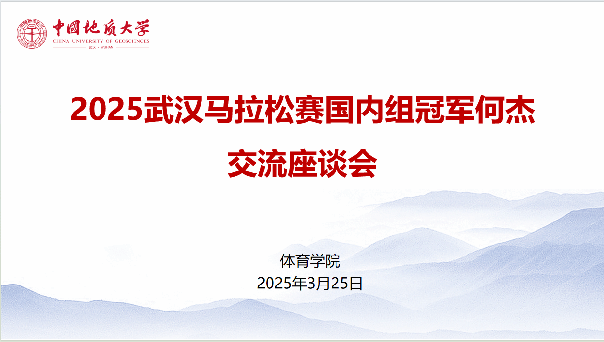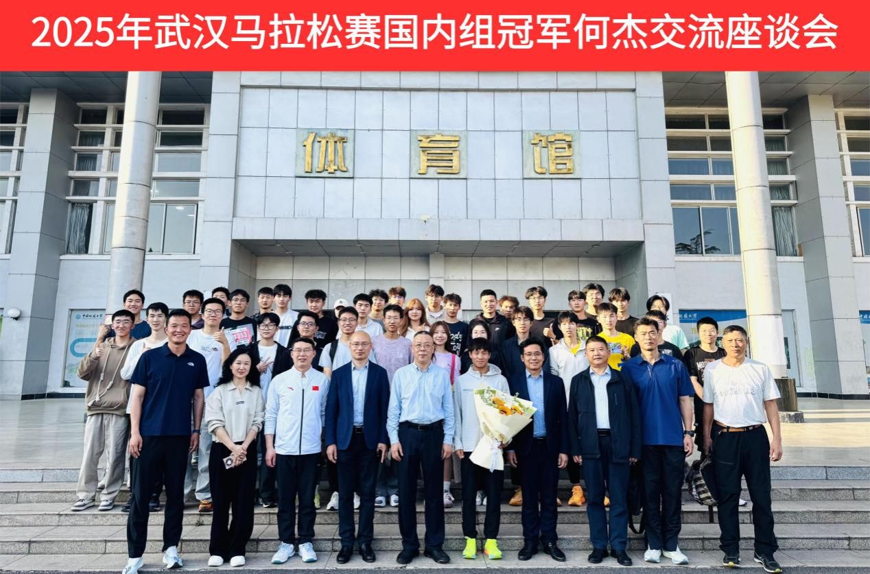 (通讯员 朱军 孙宜帆 杨麦琪)为发挥朋辈示范引领作用,赓续弘扬攀登精神,激励广大师生坚定意志、奋发向上,beat365英国官网网站于2025年3月25日下午16点,在体育馆三楼党员之家举行2025年武汉马拉松赛国内组冠军何杰交流座谈会。校党委副书记唐忠阳、党委学工部部长朱丹、beat365英国官网网站党委书记何建新、院长李元、党委副书记朱军、副院长李伦、秦长胜副教授、高水平运动队管理办公室主任褚鹏飞及学生代表参会。会议由院长李元教授主持。