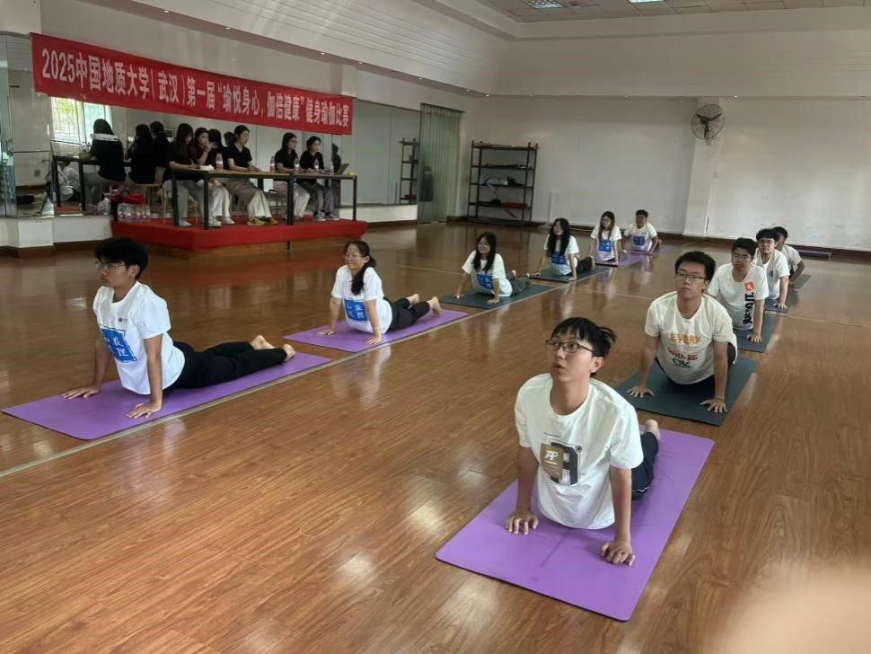 参赛选手们依据抽签顺序依次登场,比赛中,他们身着统一服饰,身姿挺拔,伴随着舒缓的音乐,将拜日式的 12 个经典动作一一呈现。伸展、平衡等每一个动作都流畅自然,刚柔并济,勾勒出优美的线条,充分展现了瑜伽运动的独特魅力,也彰显了地大学子积极向上、追求健康的精神风貌。