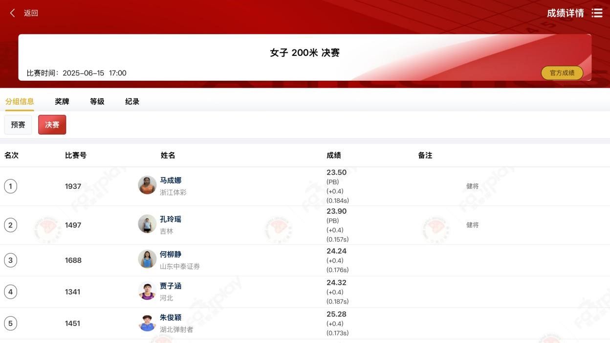 6月15日,本站赛事迎来收官之日。在下午进行的女子200米决赛中,马成娜同学跑出23秒50的成绩(国家健将:24秒)夺得冠军,同时刷新个人最好成绩。在稍后进行的焦点比赛,男子110米栏的决赛中,陈天尧同学顶住压力,跑出13秒76的个人最佳成绩,达到国际级运动健将标准(国际健将:13秒78),夺得亚军,取得重大突破!值得一提的是,陈天尧同学在短短一年半的时间里,由二级运动员晋升到国家级健将运动员,再到今天成为国际级健将运动员。如此大的提升离不开学校教练员老师的悉心指导,更离不开运动员自身的热爱与付出!