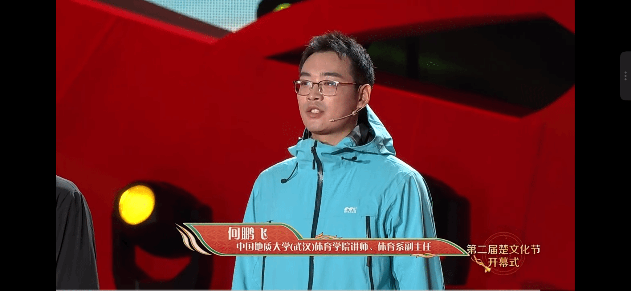 9月20日晚,由中国公共外交协会、中华文化促进会、中国文化管理协会文化传播专业委员会指导,中共荆州市委、荆州市人民政府主办的第二届楚文化节开幕式在荆州举行。beat365官网beat365英国官网网站教师何鹏飞受邀参加开幕式,与航天电影导演朱翌冉、航天新材料科技工作者曹根阳共同讲述敢为人先、探索未知的背后故事,生动诠释“向新向上向未来”的楚人精神。