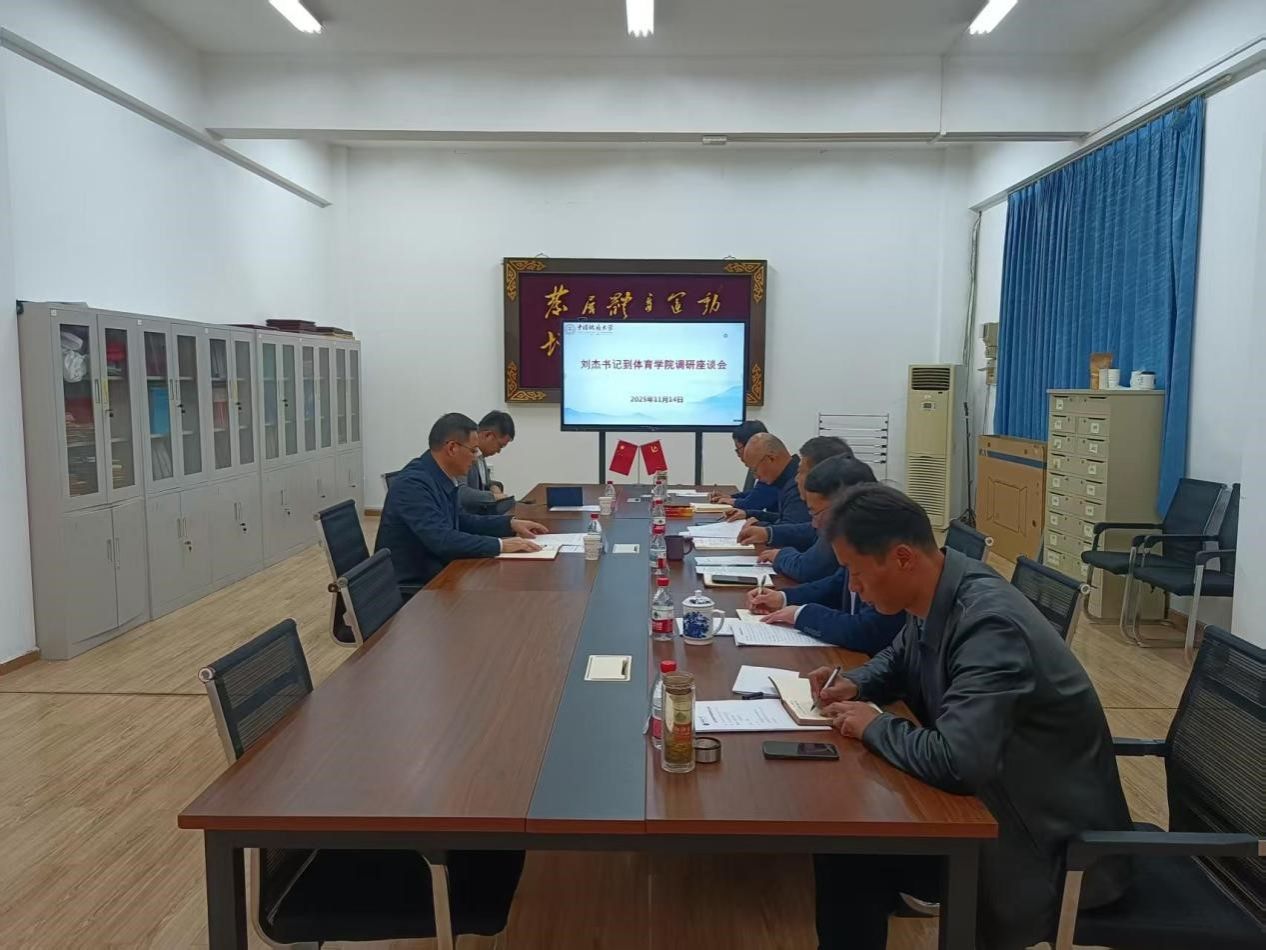 刘杰书记认真听取汇报,对beat365英国官网网站近年来取得的工作成效给予肯定,并对学院今后工作开展提出要求。他指出,beat365英国官网网站要进一步明确发展定位,加强“十五五”系统谋划,在改革破解发展难题时要坚持解放思想,确立目标和绩效导向,做好顶层设计和流程再造。刘杰书记强调,体育是“五育并举”的重要内容,公共体育教学是根本,学院要重点做好群众体育工作,处理好竞技体育与群众体育的关系。此外,刘杰书记还针对学院学科专业建设、特色户外运动、学生体测工作、教师队伍建设等提出了具体指导意见。