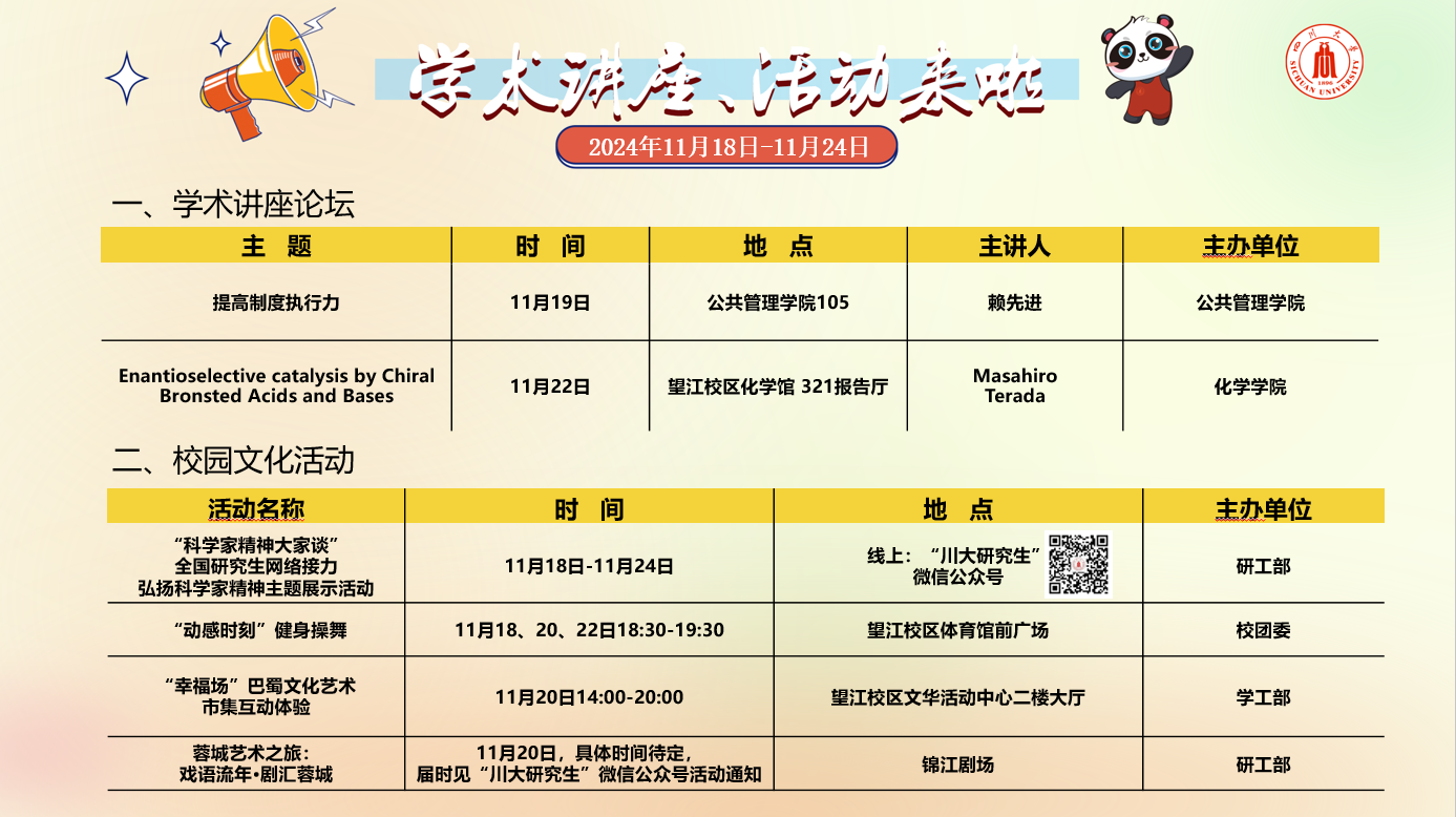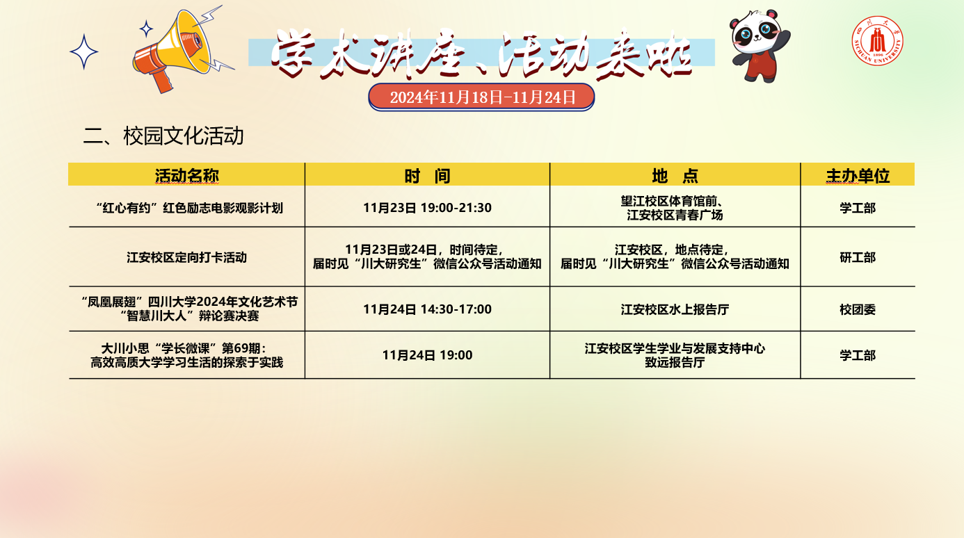 必赢线路检测3003no12024年11月18日-11月24日学术讲座论坛及校园文化活动预告