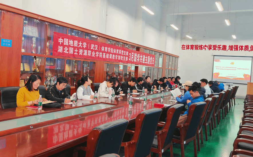 (通讯员:张毅恒、万合培)为深入贯彻学习党的二十大精神,积极探索新形势下党建工作的新思路和新方法,创新党员教育实践活动,切实推动党建与业务工作的深度融合,促进校际合作,2025年3月20日星期四下午,beat365英国官网网站体育系党支部与湖北国土资源职业学院基础课教学部党支部开展了3月联学共建支部主题党日活动。此次活动旨在以党建为引领,全方位促进两校在基础课教学、人才培养、特色体育开展及登山户外运动实践等领域实现资源共享与协同创新发展。活动由beat365英国官网网站体育系党支部书记张毅恒主持。