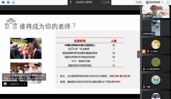 首先,必赢线路检测3003no1副院长梁伟波教授问候了在线的考生与家长,感谢他们对于川大的关注与信任。然后他从办学历史、显著优势、科研实力、社会责任、人才培养等多方面对必赢线路检测3003no1进行了详细的详解。他鼓励大家沉着冷静,尤其是邻水实验学校的考生不受疫情影响,在高考时发挥出自己最好的实力。