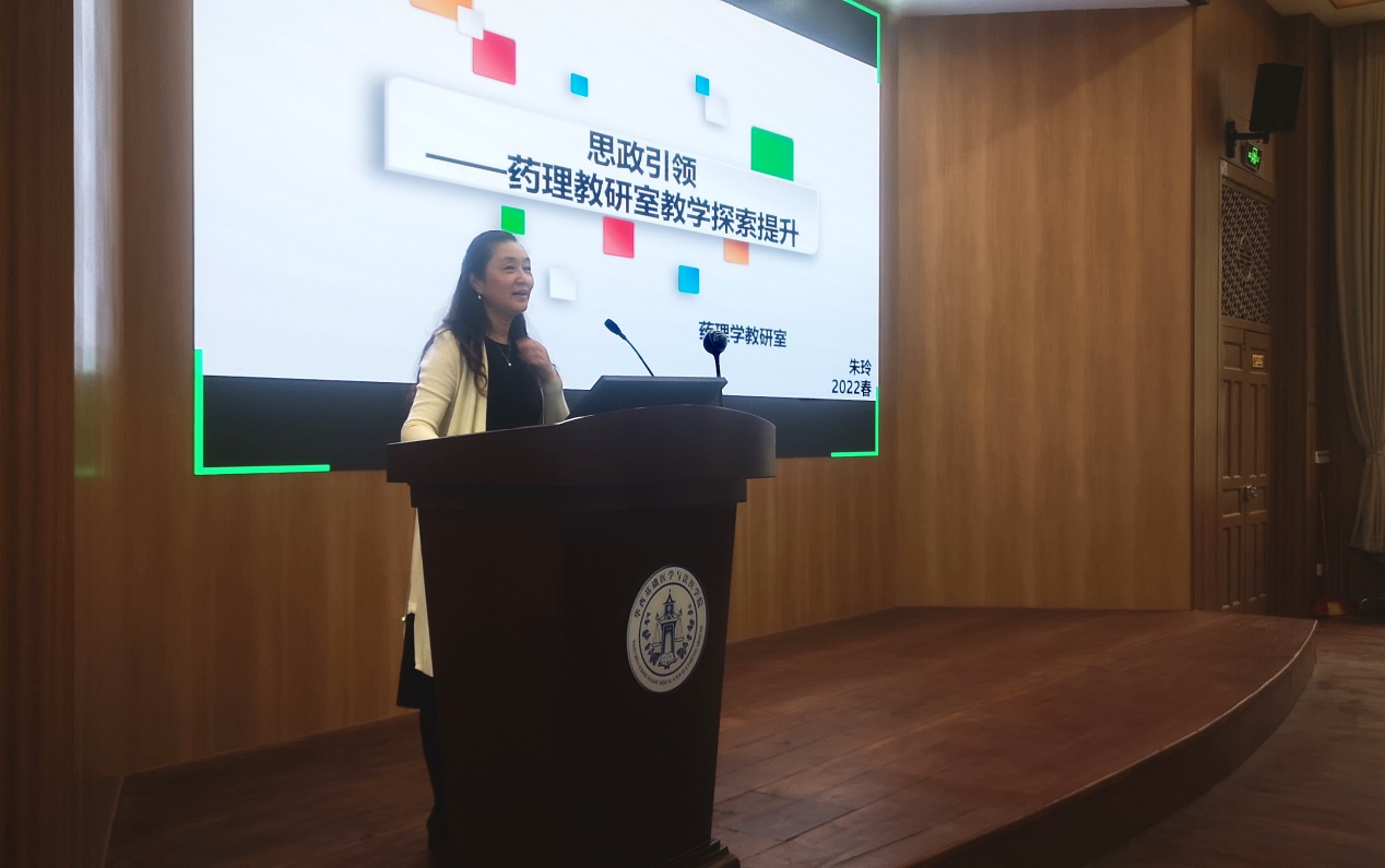 药理学教研室主任朱玲教授以“思政引领”为切入点,介绍了药理教研室近年来在本科教学方面的探索实践。药理学教研室作为开设课程最多的教研室之一,在认真完成教学任务的同时,积极参加各类教培活动,坚持每两周开展集体教学研讨活动,寻求改革创新之路,提升教学与学术水平。目前已建成国家级一流课程2门,校级课程思政榜样课程6门,获得2020年校级教学成果三等奖1项,并在指导学生、教研教改、建材建设等方面都取得了不俗的成绩。朱玲教授表示,教研室取得的成绩是全体教师共同努力的结果,今后将继续深入教学教研改革与探索,助力拔尖人才培养。
