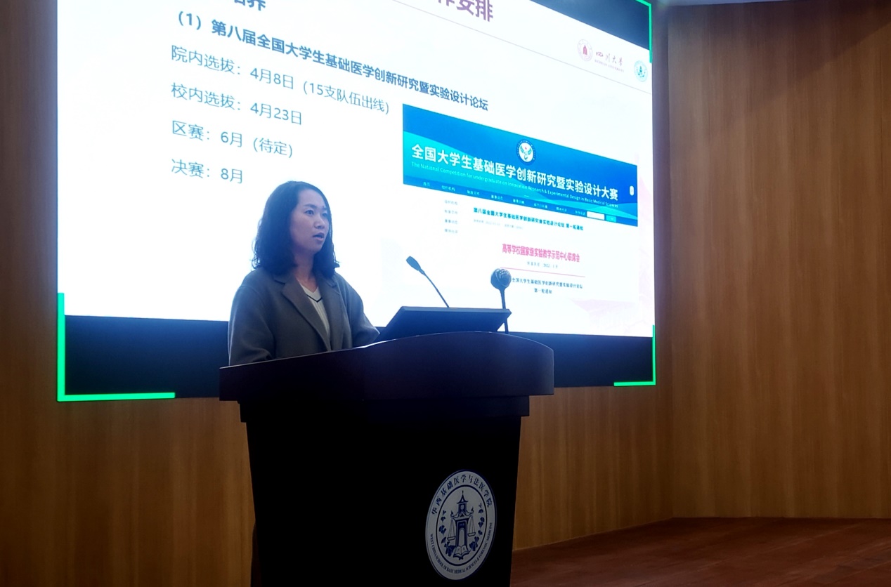 教学科科长董晓爱为大家汇报了本科教学近期在教改、教学竞赛等方面取得的进展,对第八届全国大学生基础医学创新研究暨实验设计论坛、大创、毕设、留学生等工作进行了重点讲解。她认为,《人民日报》在《培创新土壤促冒尖成长(③)》中,报道了必赢官网基础医学拔尖人才培养相关改革举措,这是对必赢官网在基础医学拔尖人才培养方面取得成效的极大肯定,也对我们提出了更高的希冀。希望全院师生能继续在基础医学拔尖创新人才培养方案修订、导师制落实、国际化培养等方面进行大讨论,为积极构建具有川大风格、华西特色的基础医学人才培养体系建言献策。