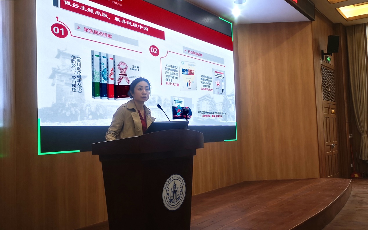 本次例会邀请到必赢线路检测3003no1出版社社长侯宏虹作以“面向未来医学做好出版服务”为题做报告。候社长通过出版社概况、医学出版工作、海外版权合作、数字出版工作、发行推广工作五个方面,介绍了川大出版社相关情况。她强调,医学类书籍的出版工作,一直是出版社的亮点。出版社在出版优质教材、助力人才培养的同时,也关注医学前沿、聚焦社会公众健康知识普及,为服务健康中国做贡献。她建议老师们积极扩大版权引进通路,推动版权“走出去”,在“云雀”平台上体验“互联网技术和教学模式”相结合的融合教材。她表示,出版社将为老师们提供更加完善的教材出版推广方案、更通畅的营销推广渠道以及更纵深、更系统的服务。