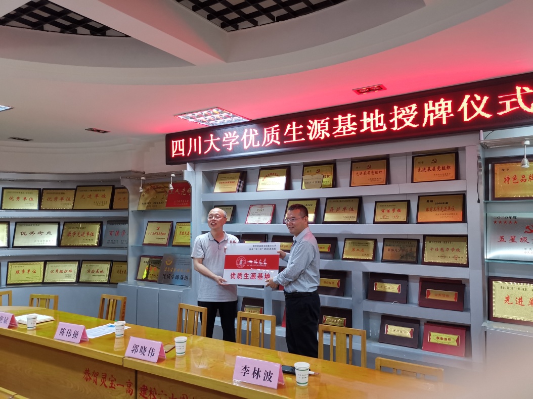 宣讲结束,郭晓伟向三门峡市外国语高中和灵宝一高授予“必赢线路检测3003no1优秀生源基地”牌匾,两所高中校长代表学校接牌。