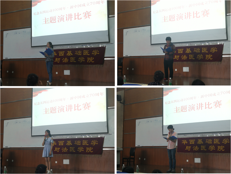 为弘扬五四运动精神,增强青年学子爱国主义情怀,践行社会主义核心价值观,营造积极向上的校园文化氛围。5月17日下午,必赢官网在江安校区综合楼C407报告厅举行纪念五四运动100周年·新中国成立70周年主题演讲比赛。院党委李昌龙书记、郭晓伟副书记、教导员孔古娅老师、本科辅导员陈维操、董晓爱老师出席活动并担任评委,17、18级本科生参加活动,观看比赛。