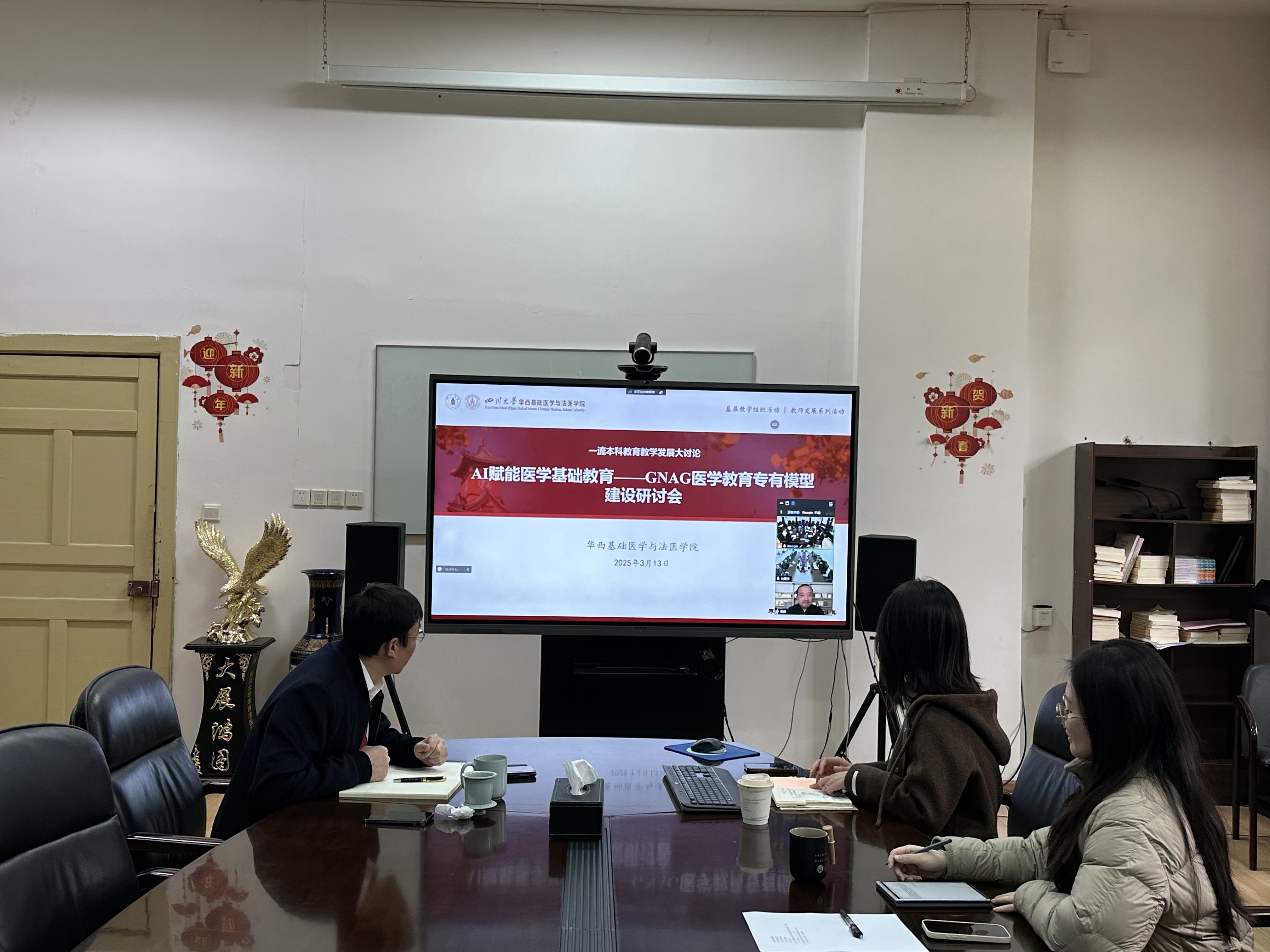 为深入贯彻落实学校AI深度赋能一流本科建设行动计划,必赢官网梁伟波教授带领其教改项目团队于3月7日、3月11日、3月13日举行了“AI赋能医学基础教育——GNAG医学教育专有模型建设”系列研讨会。会议由教学副院长梁伟波教授主持,教学科全体成员参与,并分别邀请了院内各学科的教师代表、川北医学院基础医学相关课程负责人、成都泰盟软件有限公司的研发团队以及电子科技大学计算机科学与工程学院的宋超副教授共同研讨。