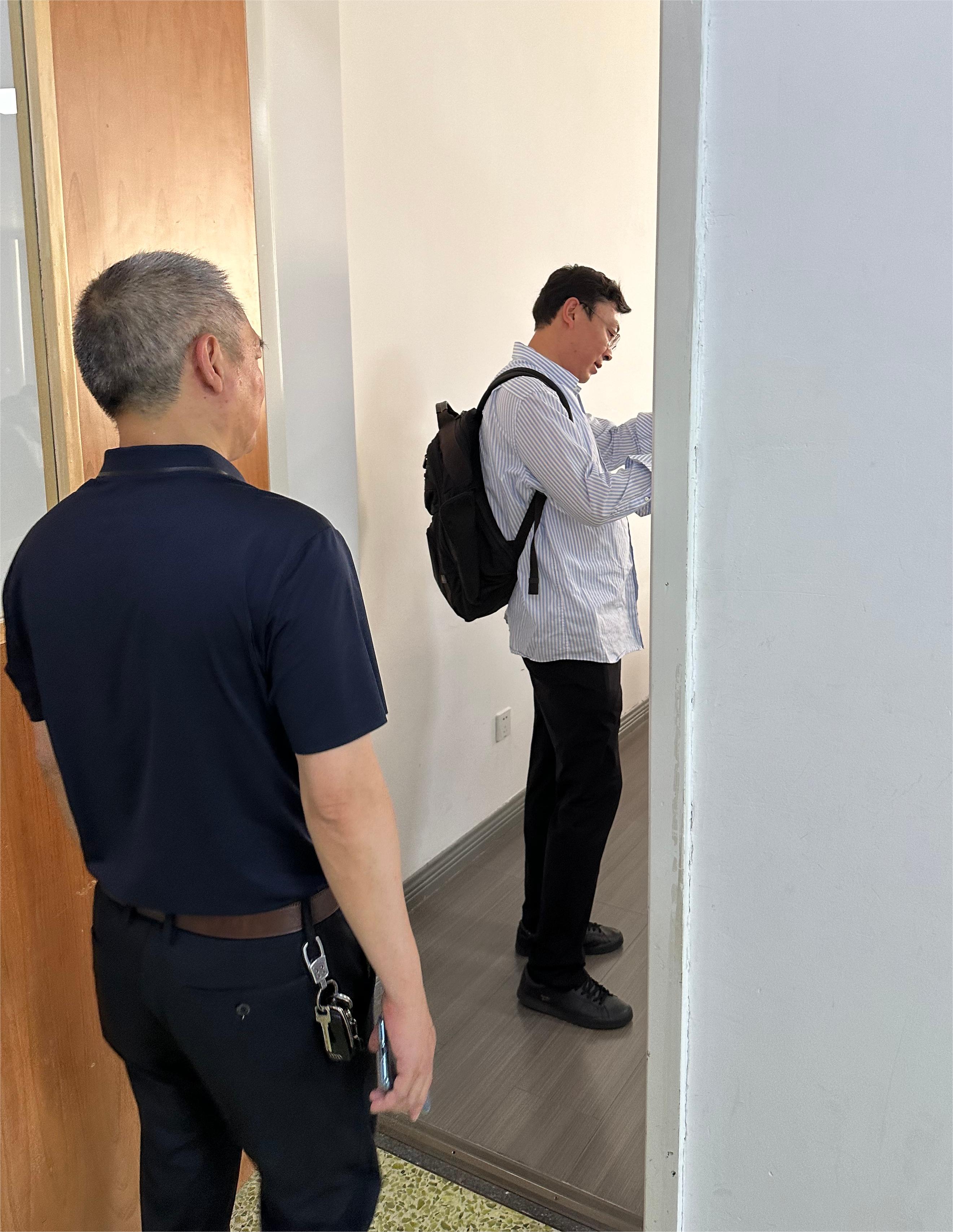 9月2日早上8点,必赢官网院长李昌龙、教学院长梁伟波来到江安校区,对江安一教各教学楼及综合楼进行教学工作的实地巡查,深入了解了任课老师到岗、学生到课及教学计划实施、教材选用使用等实际情况。虽然开学第一周遇天气炎热,教学楼突发断电,空调设备故障等紧急情况,老师和同学们仍以饱满的精神状态迎接新学期的开始。